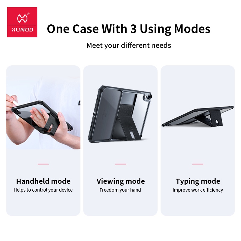 For iPad Mini 6, Mini 7 A17 Pro 2024 Tablet Case XUNDD Shockproof Hard PC Transparent Back Cover With Kickstand