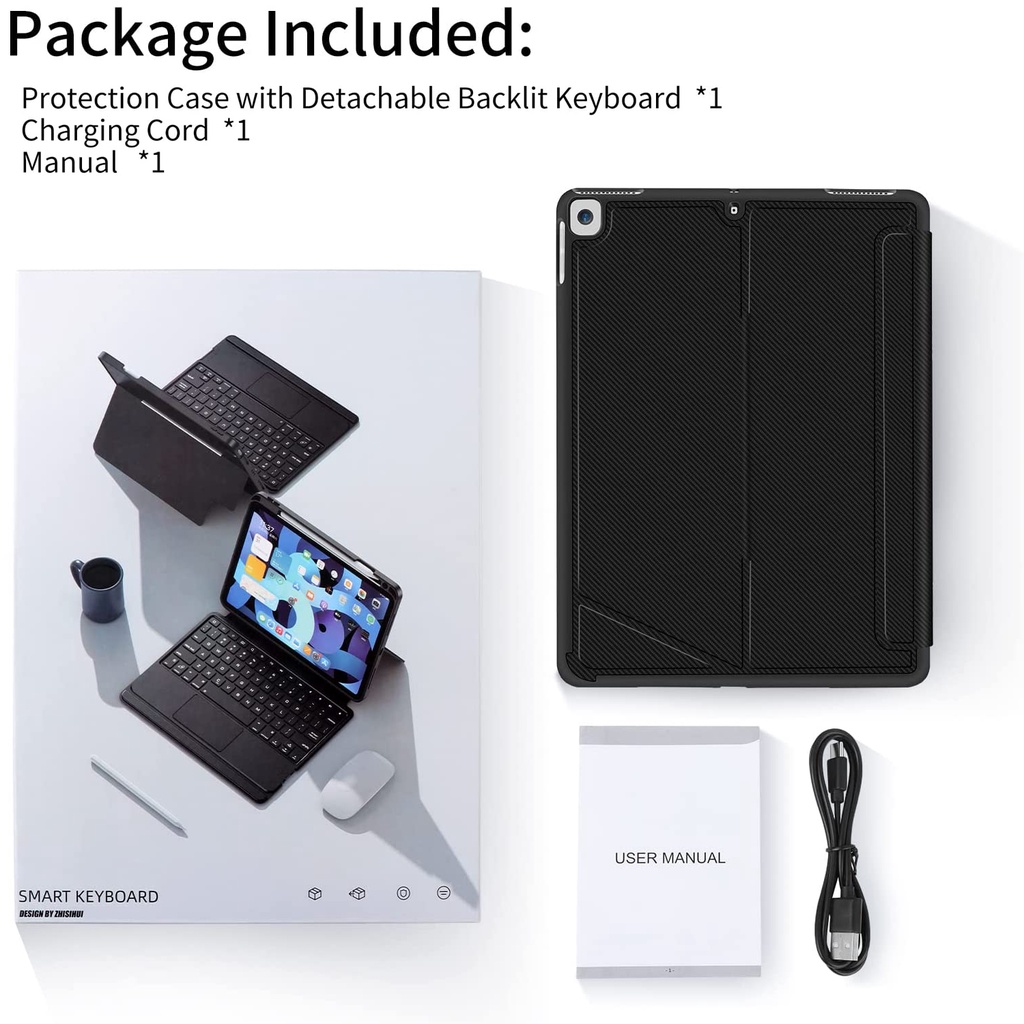 For iPad Pro 10.5 2017 iPad 9 8 7 Air 3 2019 2020 2021 Folio Touch Magic Keyboard Case Backlit Trackpad Magnetic Detachable Bluetooth Smart Wireless Keyboard Cases