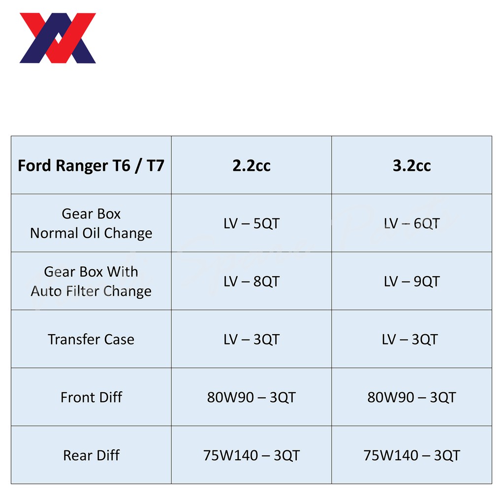 Ford Ranger T6/T7 3.2cc Gear Oil Service Package (Oil & Filter)