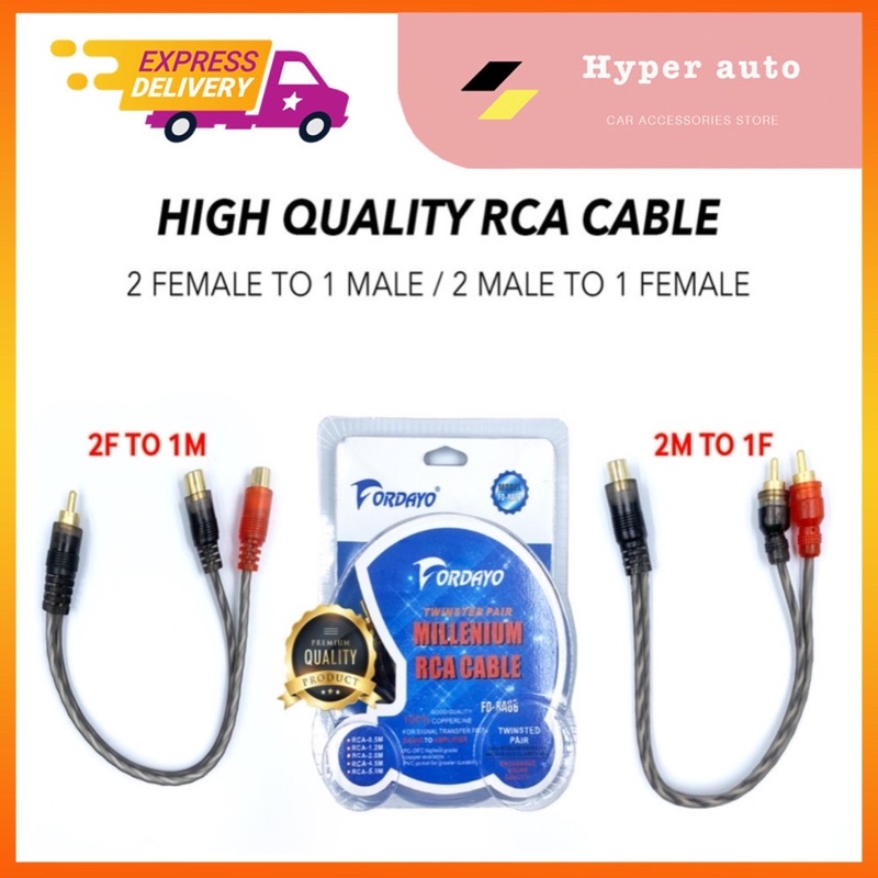 Fordayo Car Audio RCA Cable 1 Male To 2 Female / 1 Female To 2 Male Car Audio Stereo Amplifier RCA Input Output Cable
