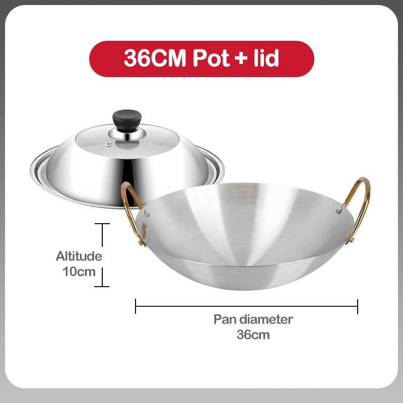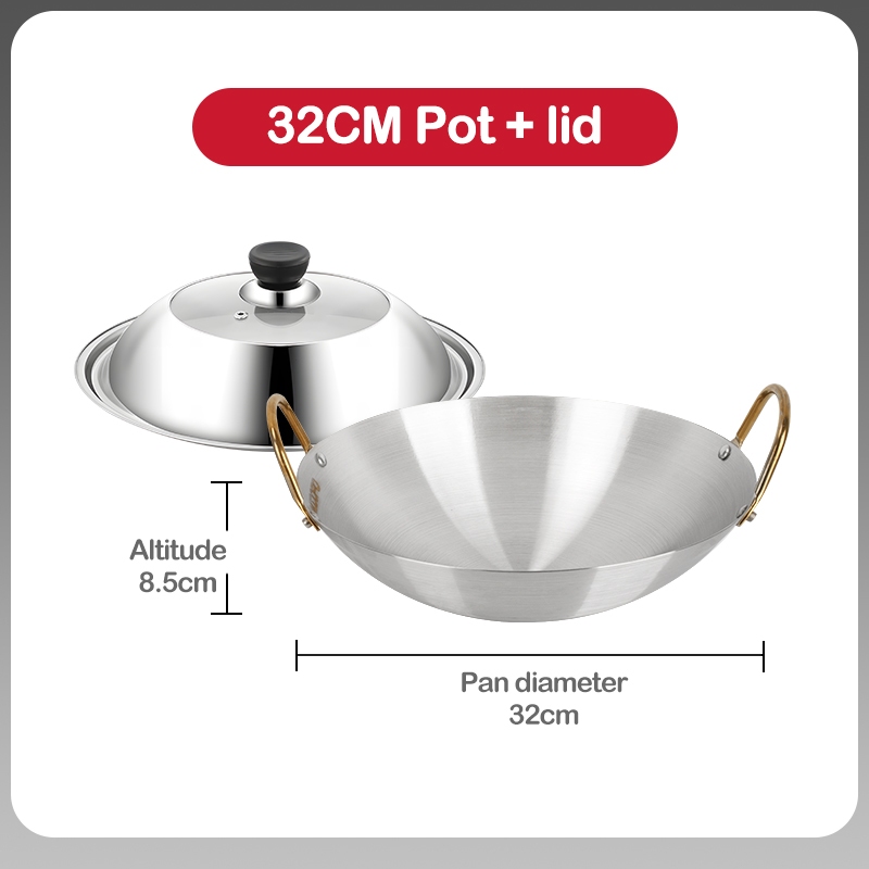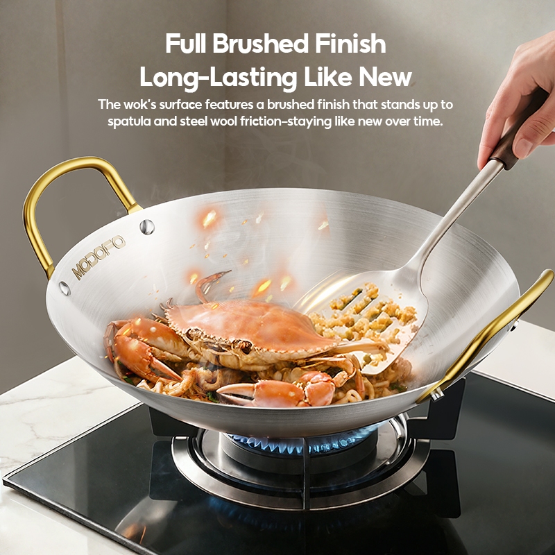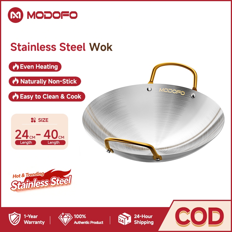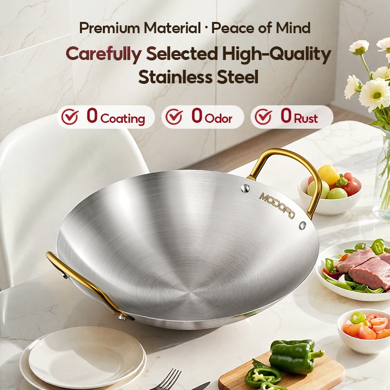 MODOFO Periuk Kuali Stainless Steel Non Stick Frying Pan Wok Handle untuk Dapur Kitchen Stove Kuali Besar