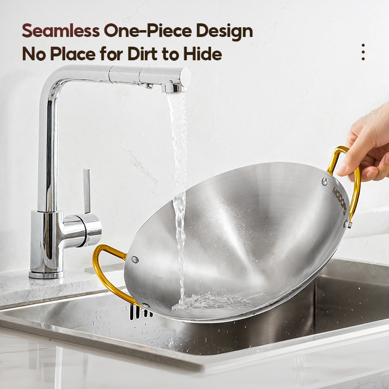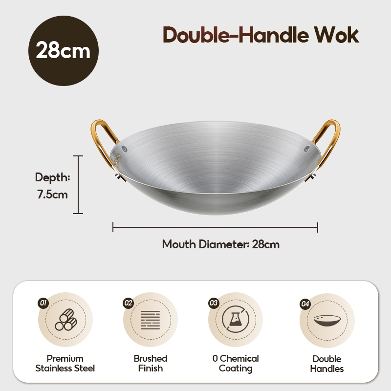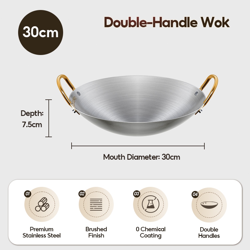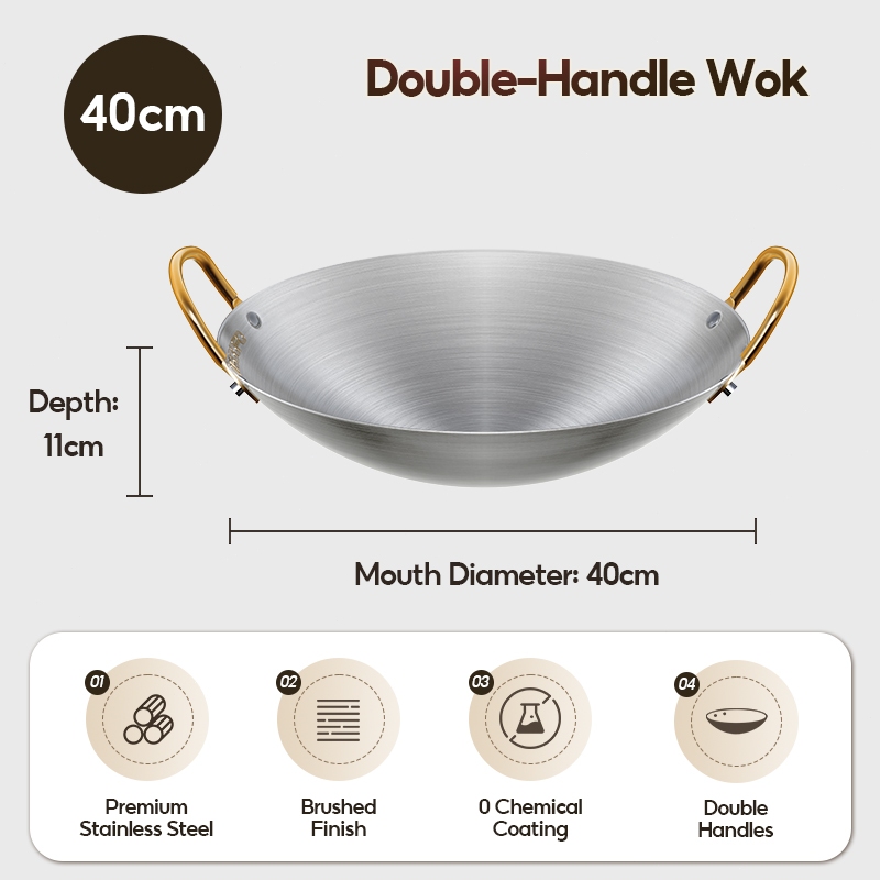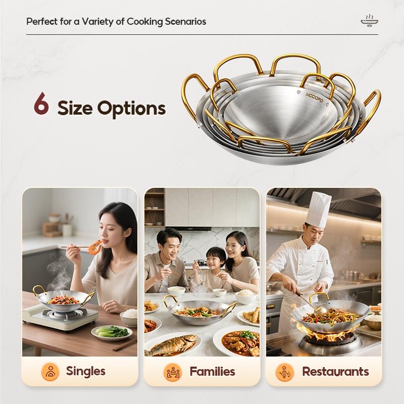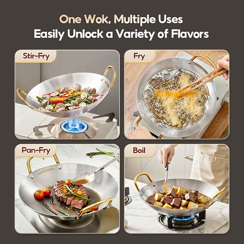 MODOFO Periuk Kuali Stainless Steel Non Stick Frying Pan Wok Handle untuk Dapur Kitchen Stove Kuali Besar