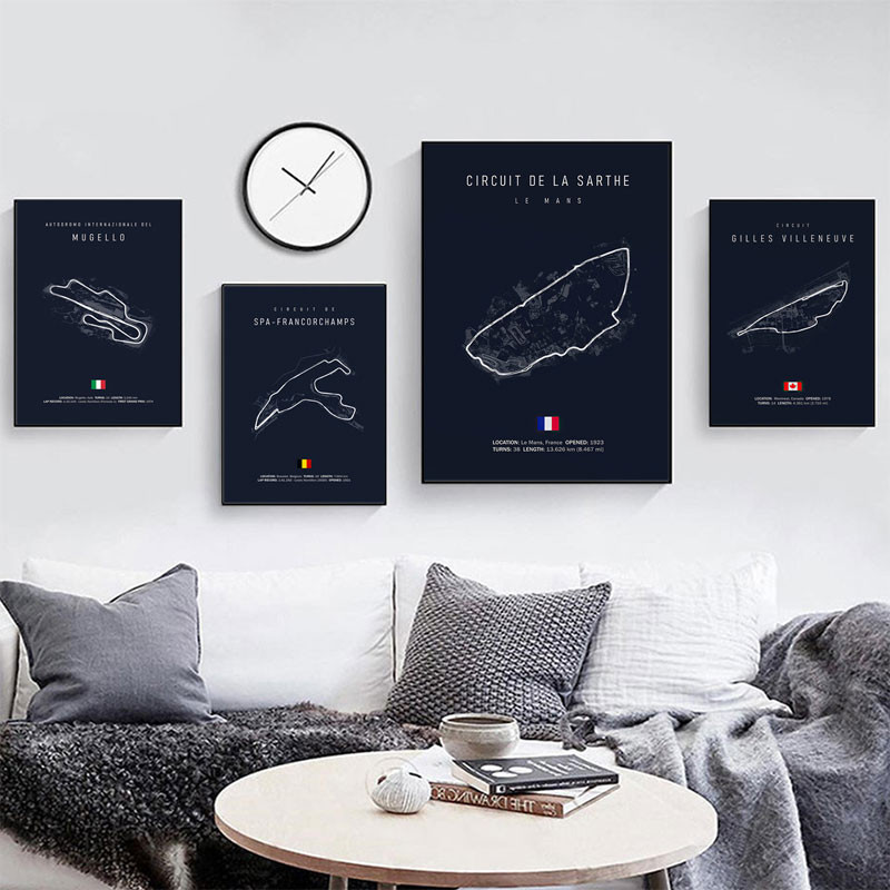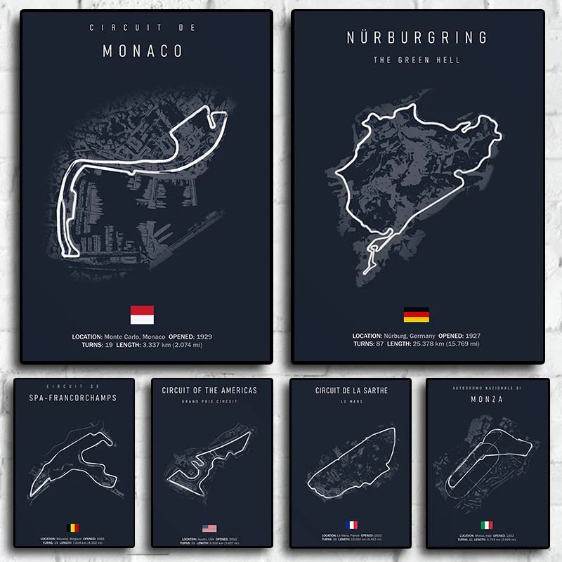 Formula 1 Imola Monaco Track Circuit Canvas Painting F1 Art Nordic Posters and Prints Wall Pictures for Living Room Decoration