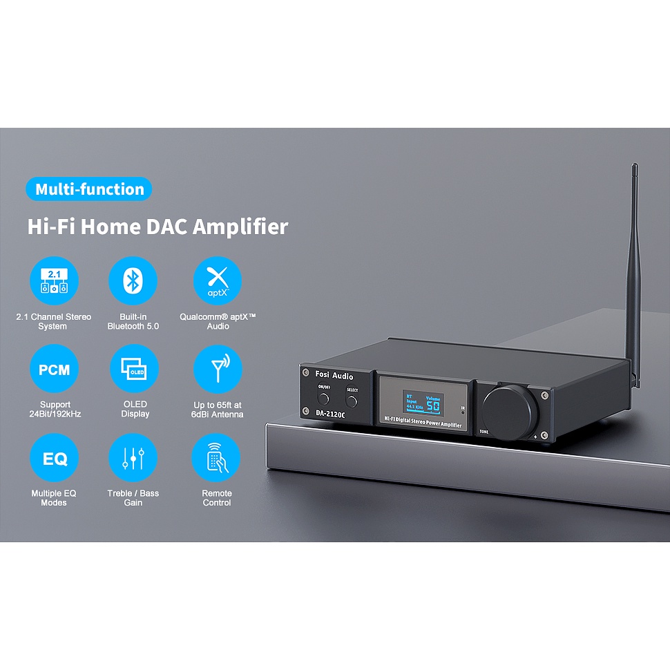 Fosi Audio Stereo HiFi 2.1 Channel Bluetooth Amplifier (120W x 2) DA2120C