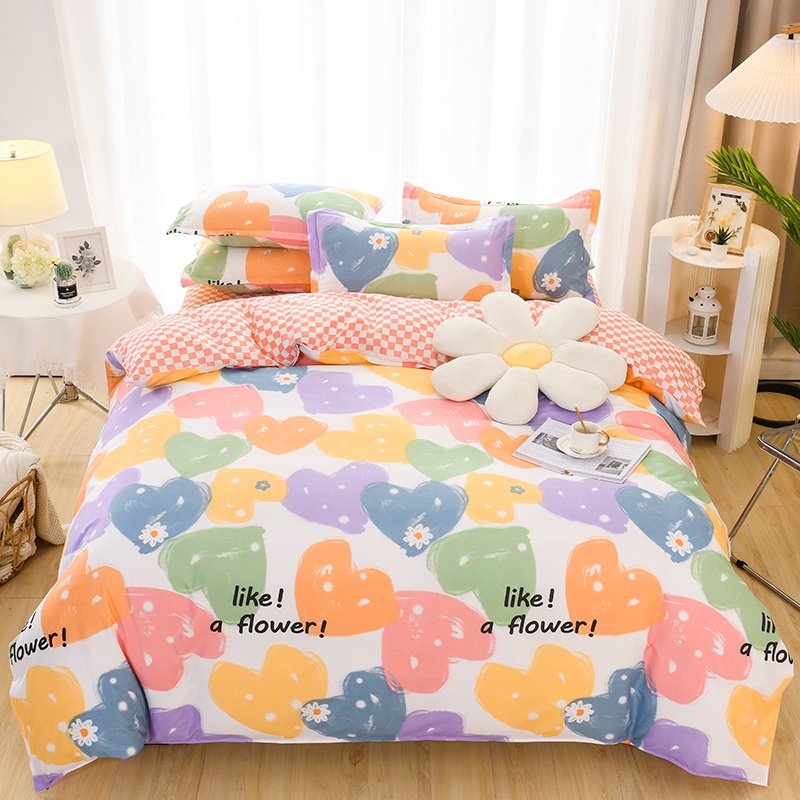 Four Piece Bedding Set Quilt Cover Fitted Sheet Set Pillowcase Quilt Bedding Set Satin Soft Silk Solid Quilt Cover Set