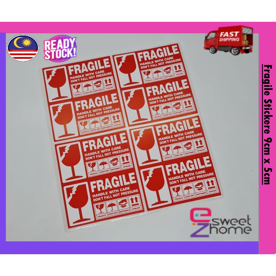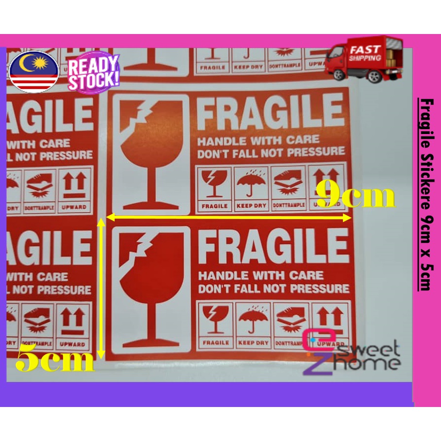 Fragile Sticker 9cm x 5cm Fragile Handle with care sticker ready Stock