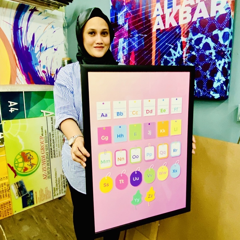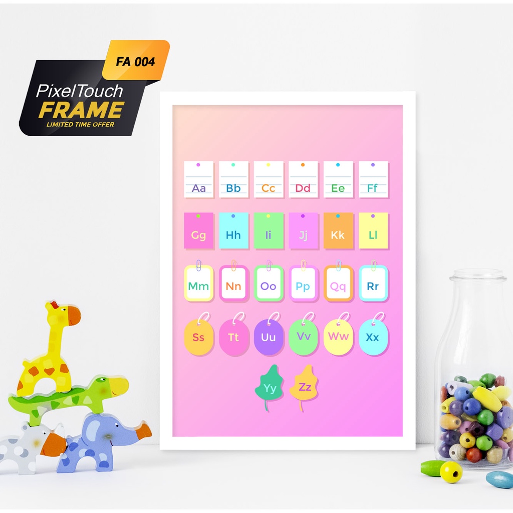 Frame ABC ALPHABET Poster Wall Art Kids Room Decor Hiasan Bilik Tidur Kanak Kanak Sekolah Tadika Sekolah Rendah Size A2