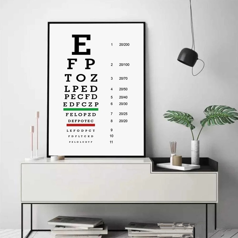 Frameless Eye Visual Acuity Test Snellen Chart Print Canvas Painting Wall Art Pictures for Children Youth Living Room Self Test Home Decor