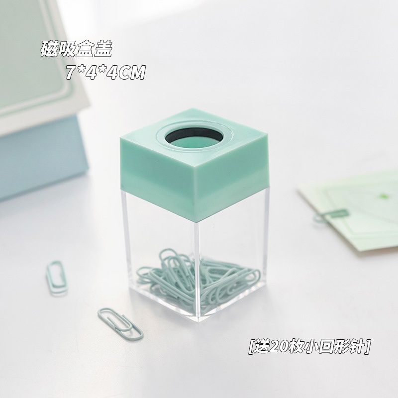 Free 18 Paper Clips Macaron Color Creative Magnetic Paper Clip Storage Bucket Office Stationery Storage Convenient Pin Box For School Office Stationery Supplies