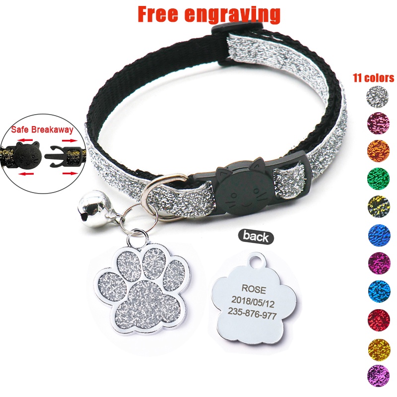 Free Customized Dog Tag Cat Tag Dog Collar With Bell Cat Collar Safe Breadaway Collar Adjustable Collar Cat Necklace Puppy Kitten Collar