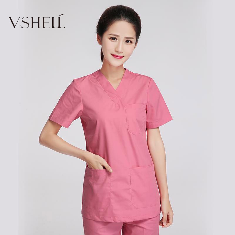 Free Name Scrub Suit Scrub Baju Full Set Take in Hospital Clinic Dental Spa Beauty Medical Nurse Suit Hospital Uniform Surgical Clothes Cotton