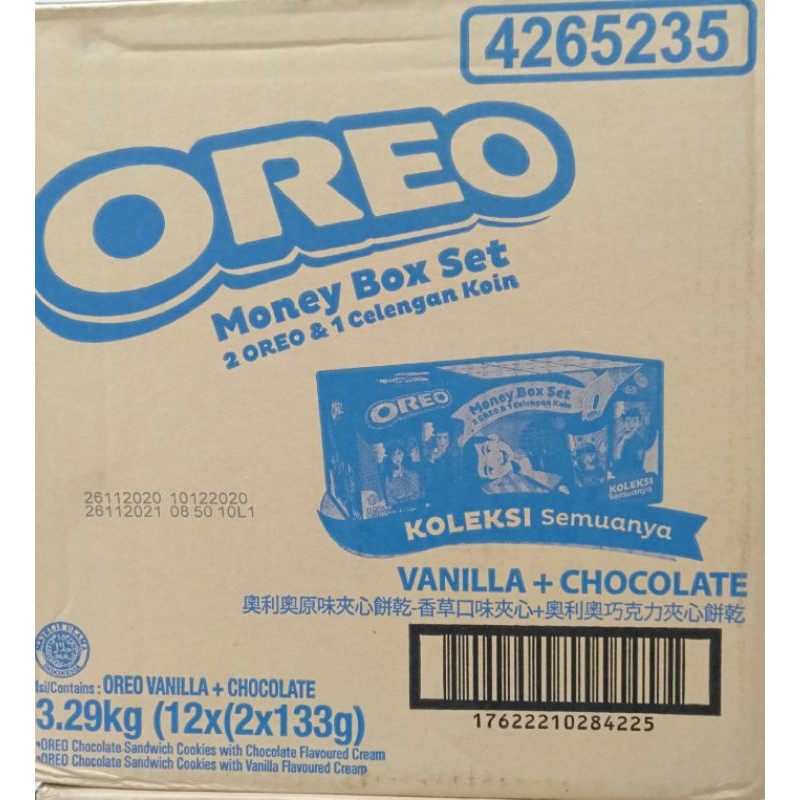 Free Oreo Cardboard piggy bank contains 12 boxes (contains Oreo vanilla + Chocolate Oreo) 133 gr