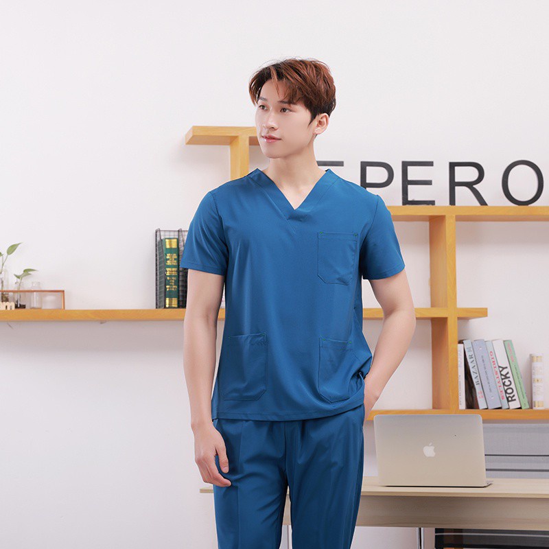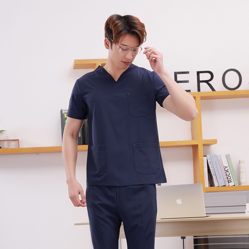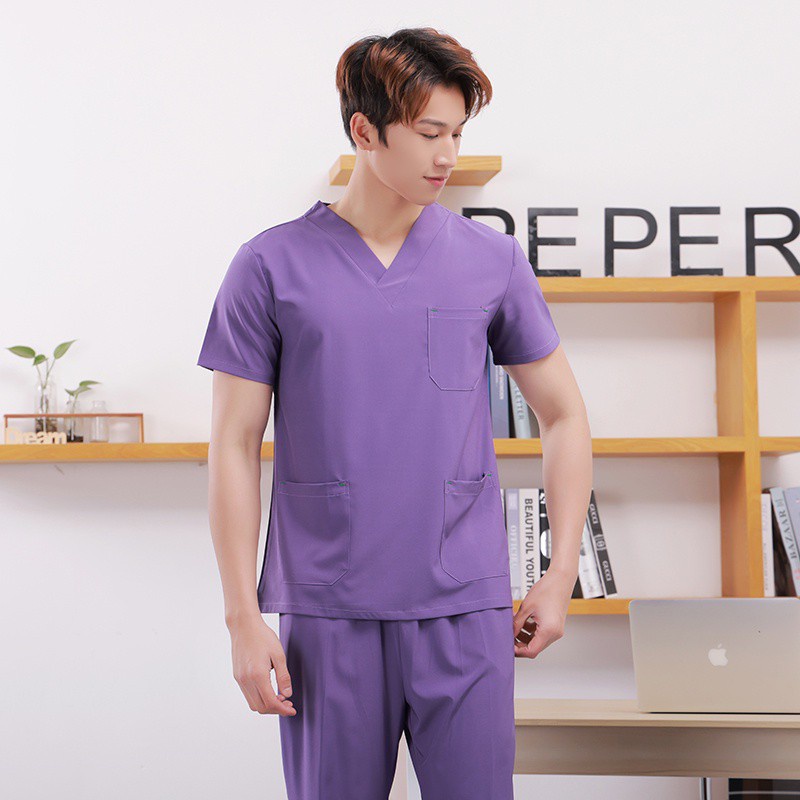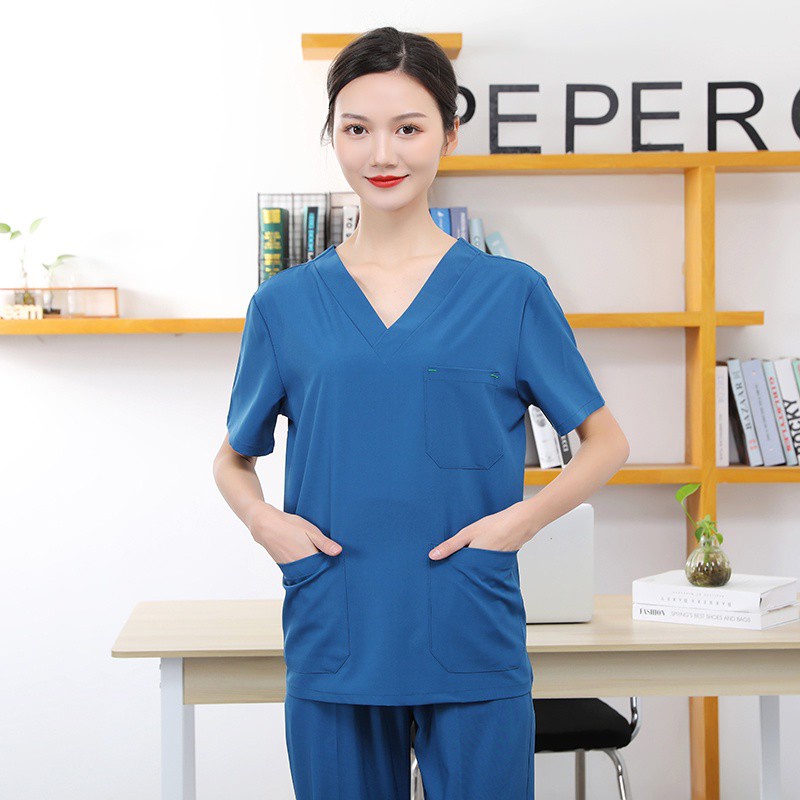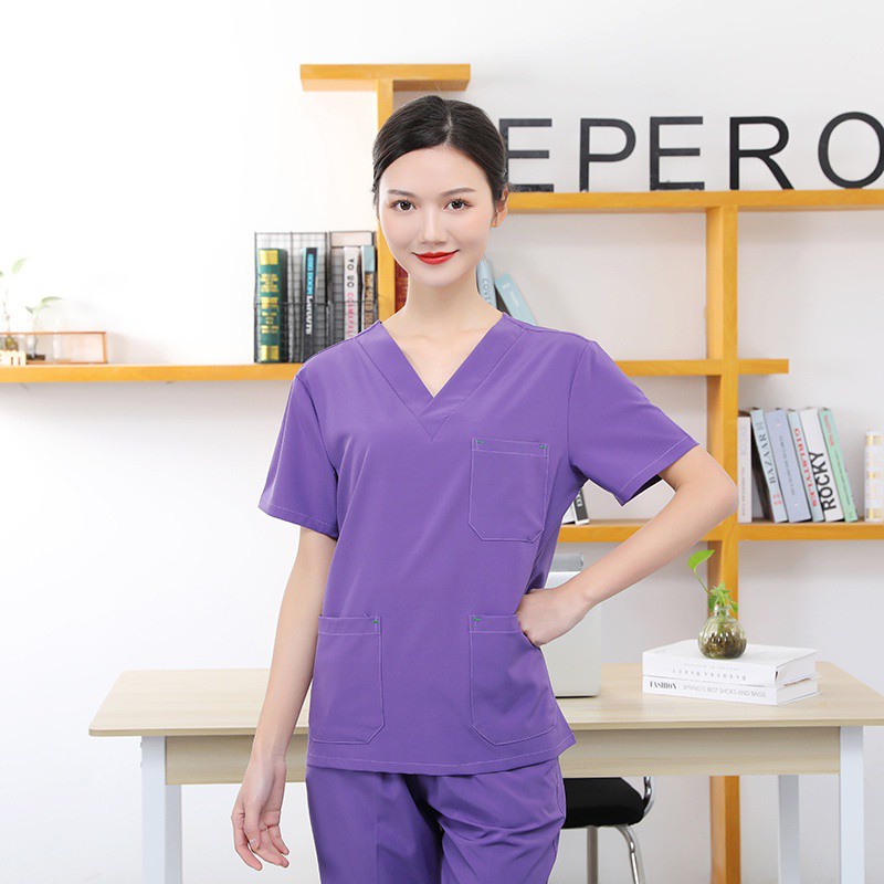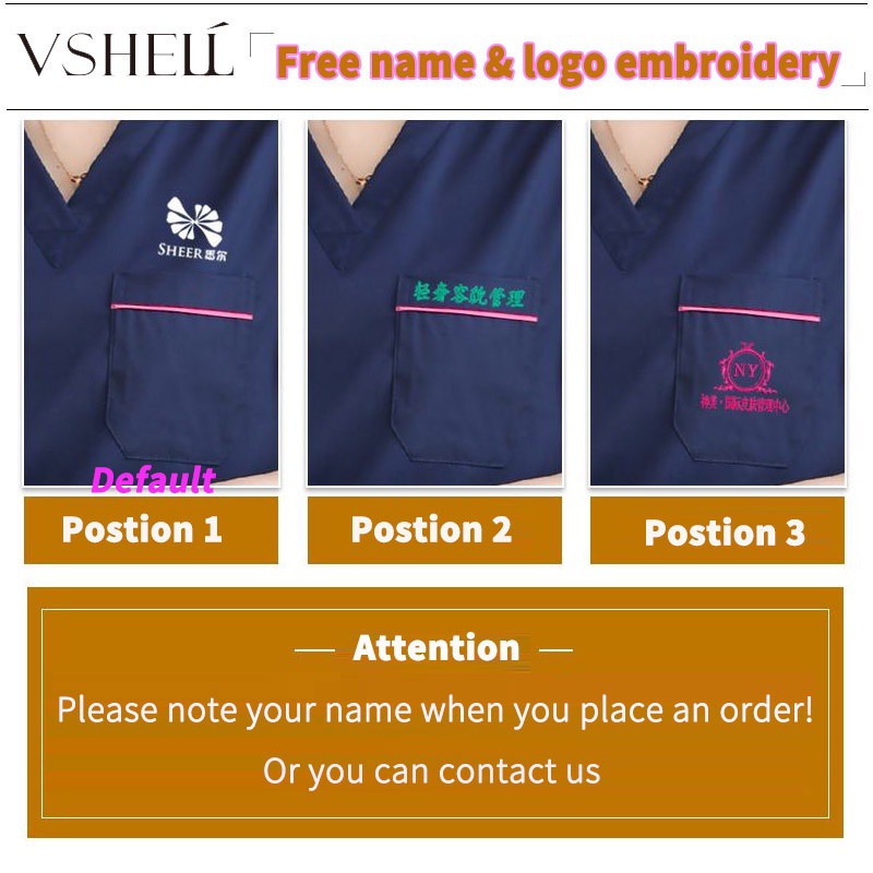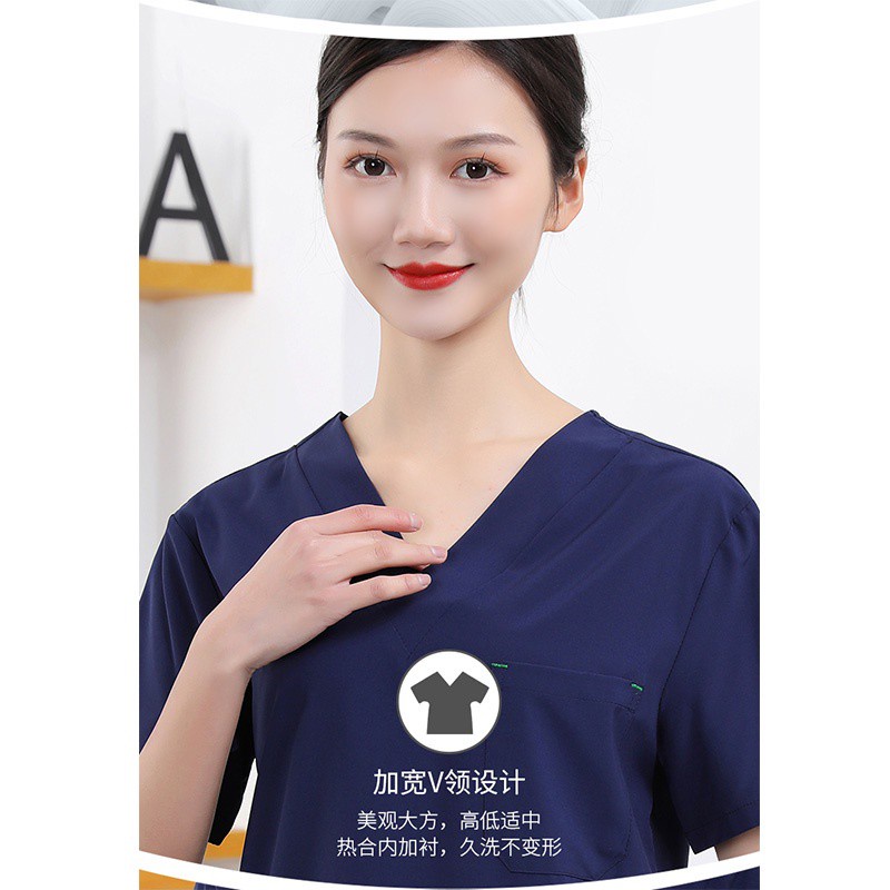 Free name Scrub Suit Baju full set hospital clinic dental spa beauty Medical Nurse Uniform Surgical Clothes Cotton