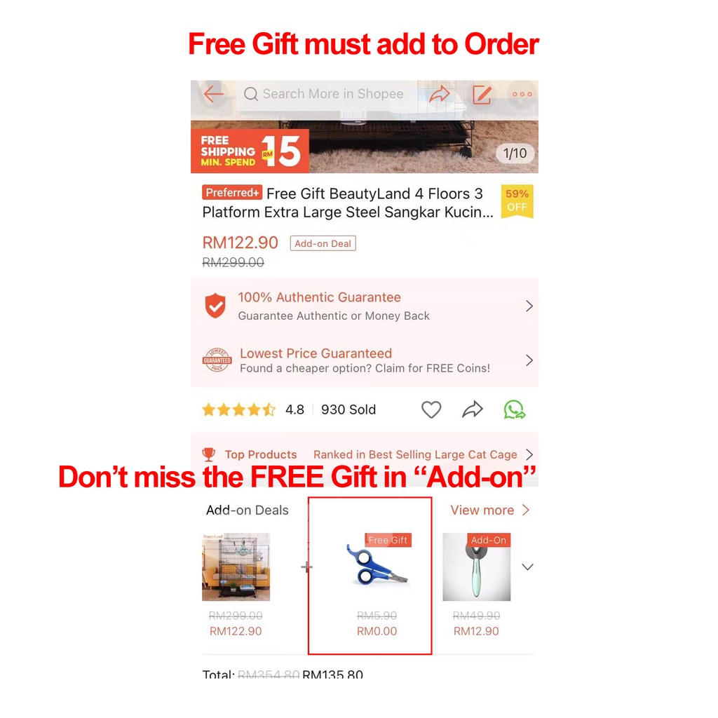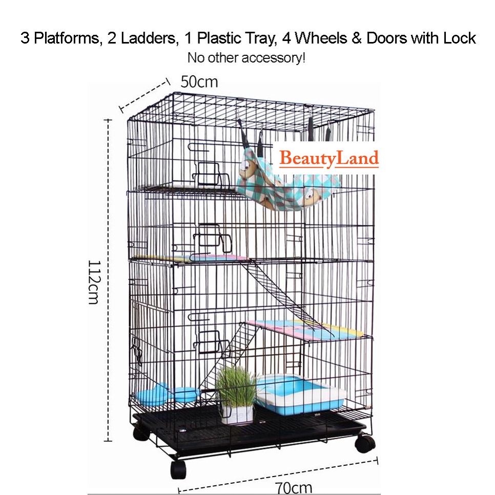 FreeGift T&C- 4 Floors 3 Platform Extra Large Steel Sangkar Kucing 4 Tingkat Cat Cage Anak Kucing