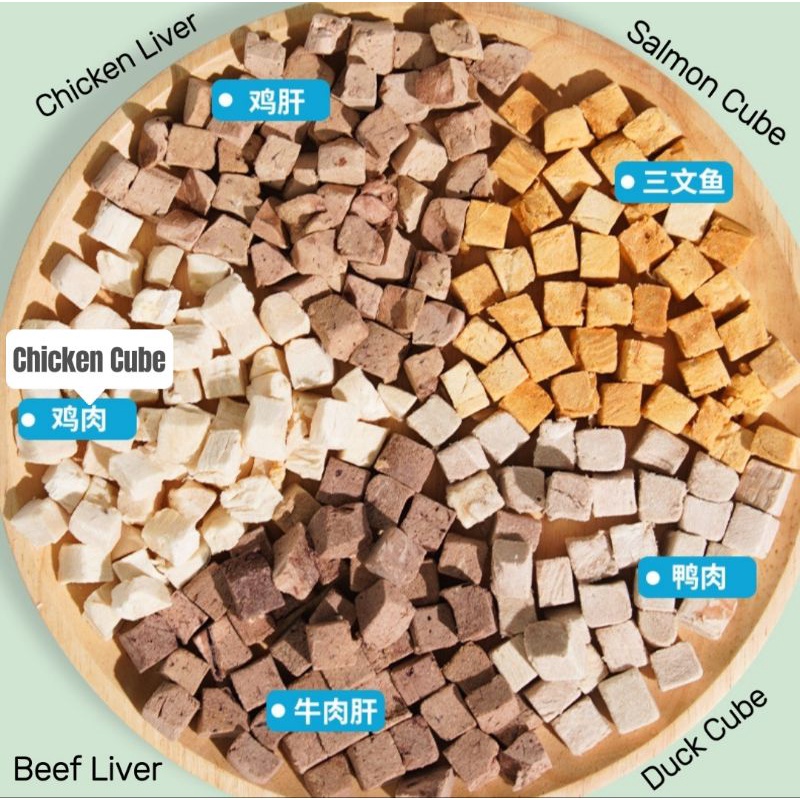 Freeze Dried Booster chicken meat cat food booster meat cat treats high protein Egg Yolk dada ayam Salmon omega 3