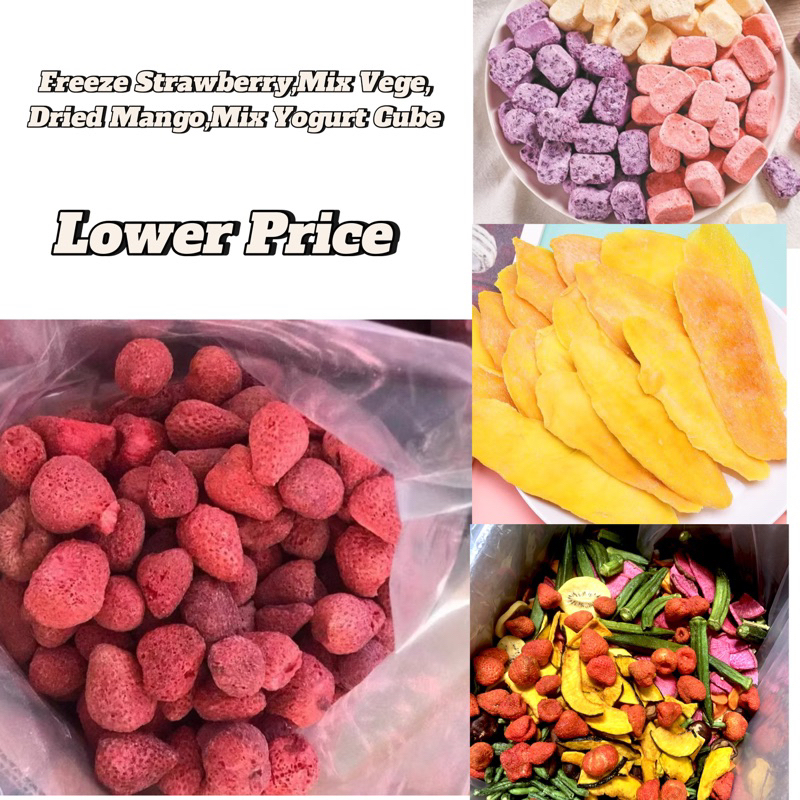 Freeze dried Strawberry and Yogurt Cube/Mushroom Dried (冰干酸奶块和草莓干)Lady finger ,Mango,Mix Vege(ready stock)