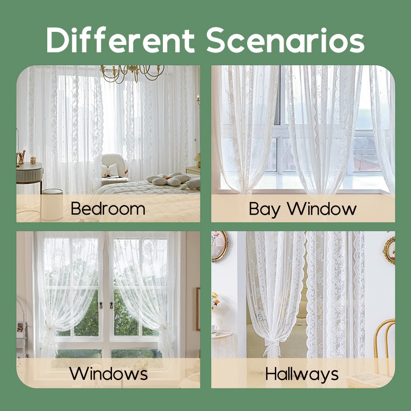 YYT Lace Privacy Door Curtain French Bedroom Curtains No Punching With Telescopic Rod