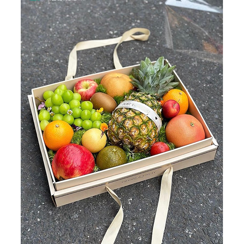 Hộp đựng trái cây hoa quả Fresh & fruit có quai xách sang trọng, hộp đựng hoa quả nắp mica trong suốt