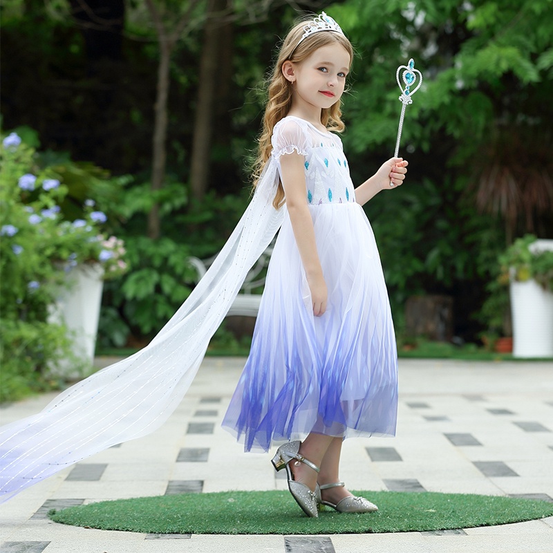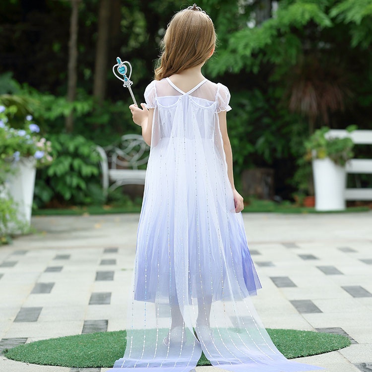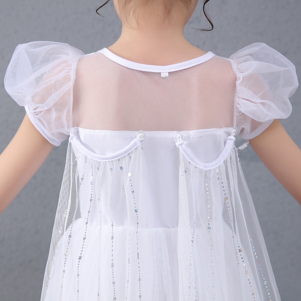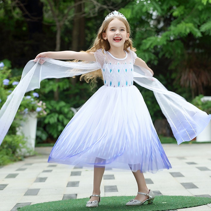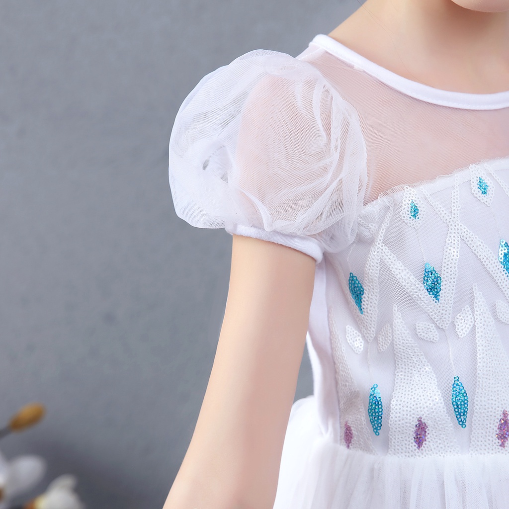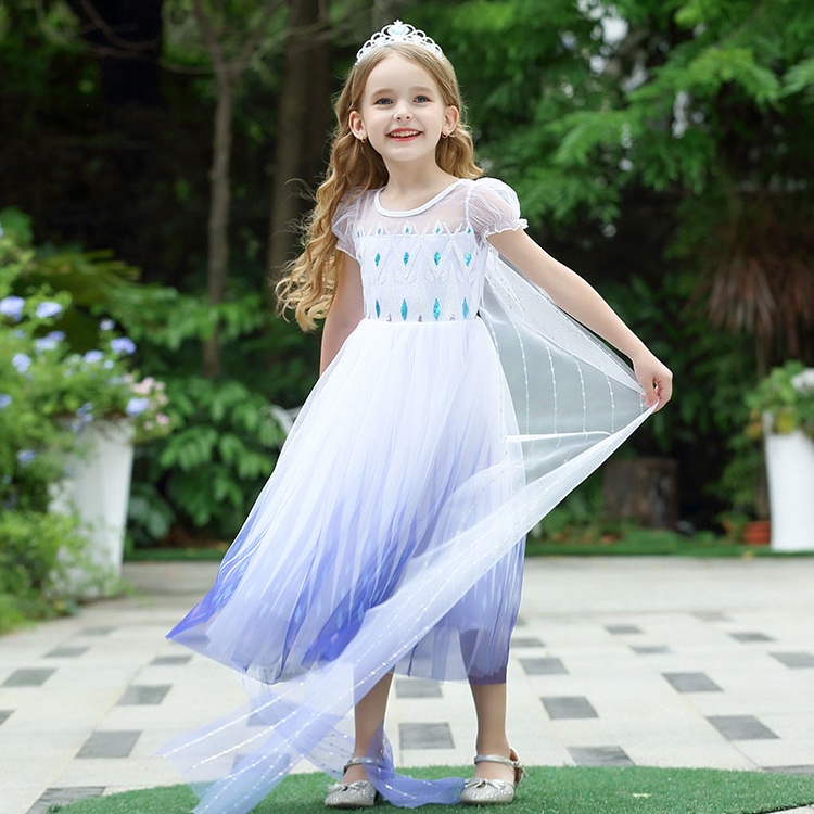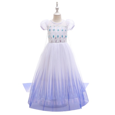 Frozen 2 Princess Dress Elsa Costume For Kids Girl White Dinner Dress with Long Tail Gown with Sequins