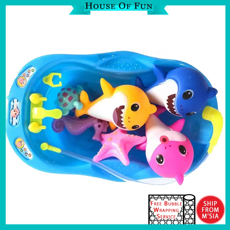 Frozen And Baby Shark Bathtub With Baby Shark Family Bath Toy Set Washing Baby Toys Water Floating Toy Water Kids Mainan