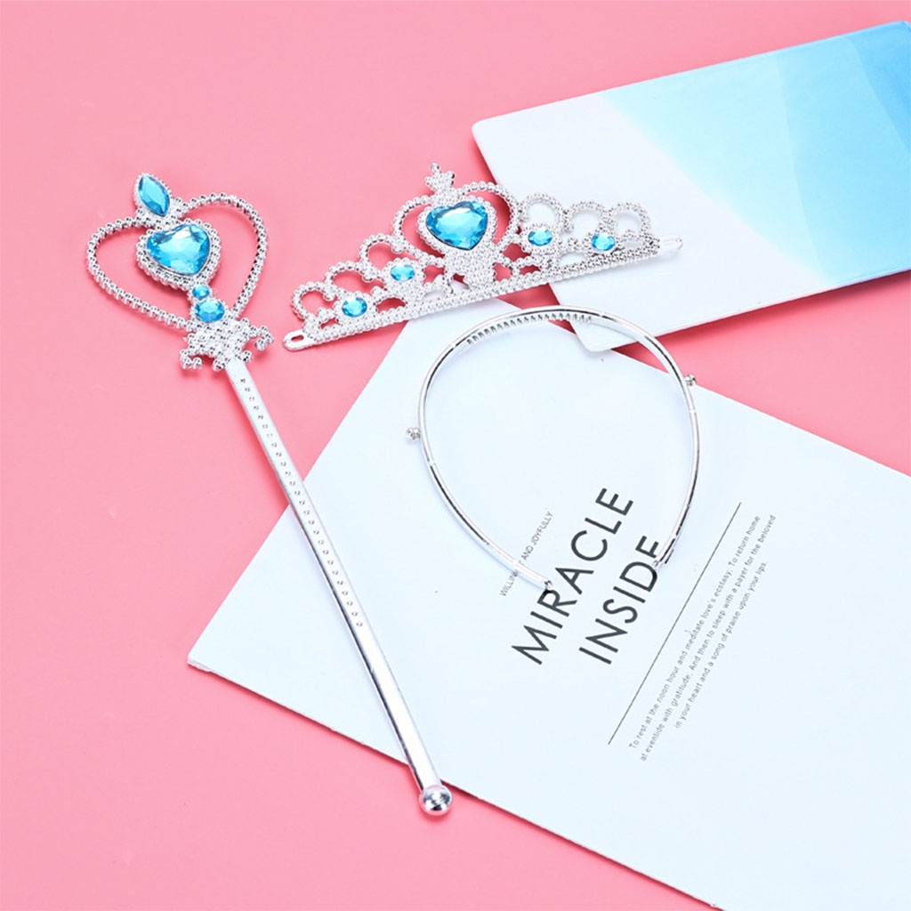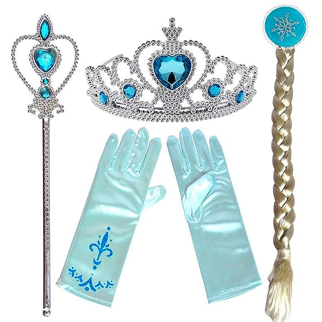 Frozen Elsa Anna Girls Princess Elsa Hair 4 pcs Accessories Wig Wand Crown Cosplay Headset Kids Girls Party Costume Set