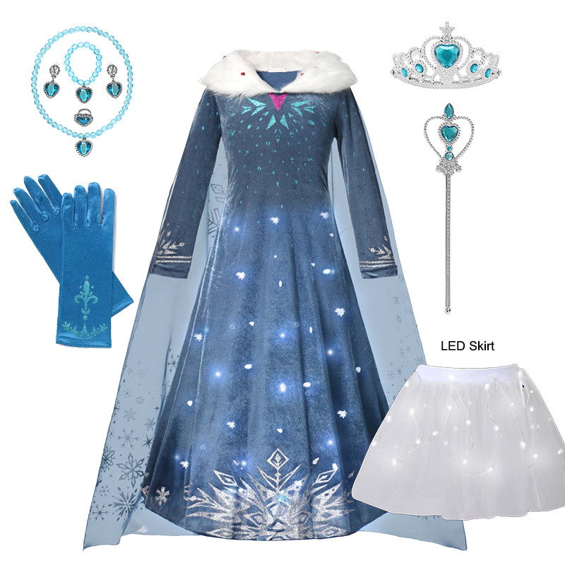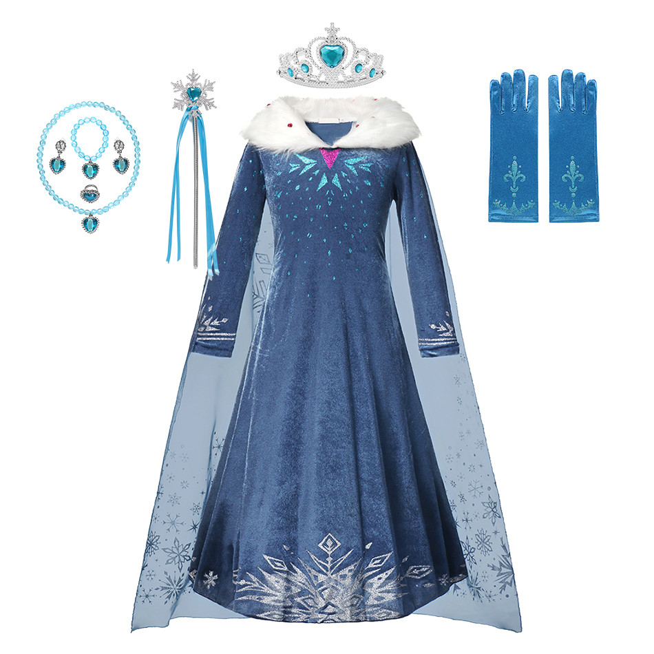 Frozen Snow Queen Elsa Costume for Girls Elsa Cosplay Princess Dress Kids Dress Up Halloween Birthday Party Outfit
