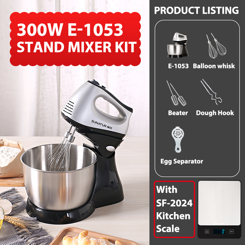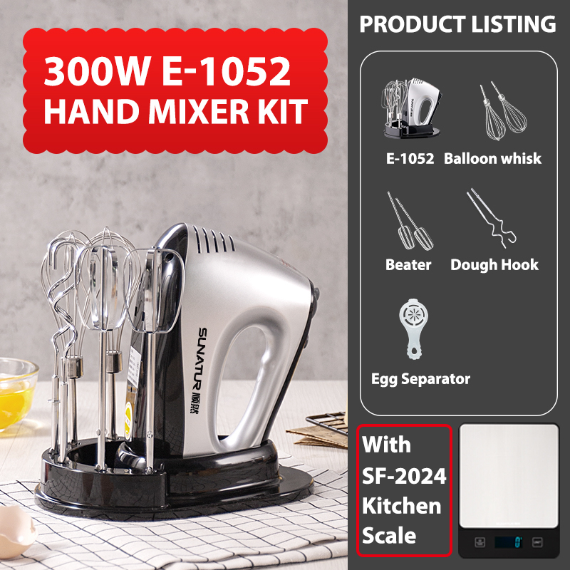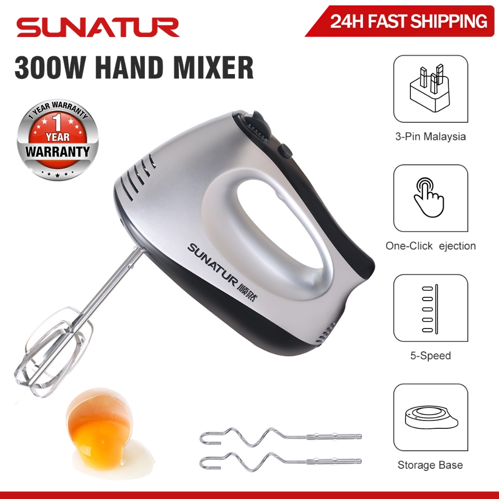 Pengadun Tangan SUNATUR 300W Pemukul Kek 5 Kelajuan Krim Elektrik Whip Pukul Telur 3-Pin Palam Malaysia (E-1052)