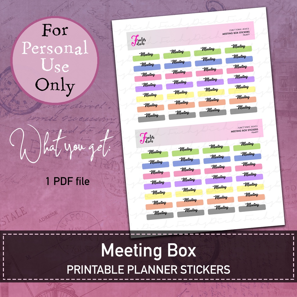 FuchsDich Printable MEETING Boxes Stickers | PDF File | Label Rectangle | Functional Planner Stickers | Journal Stickers