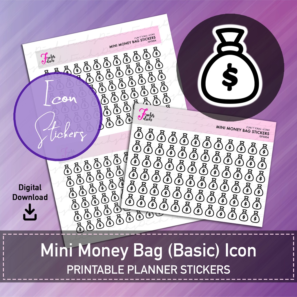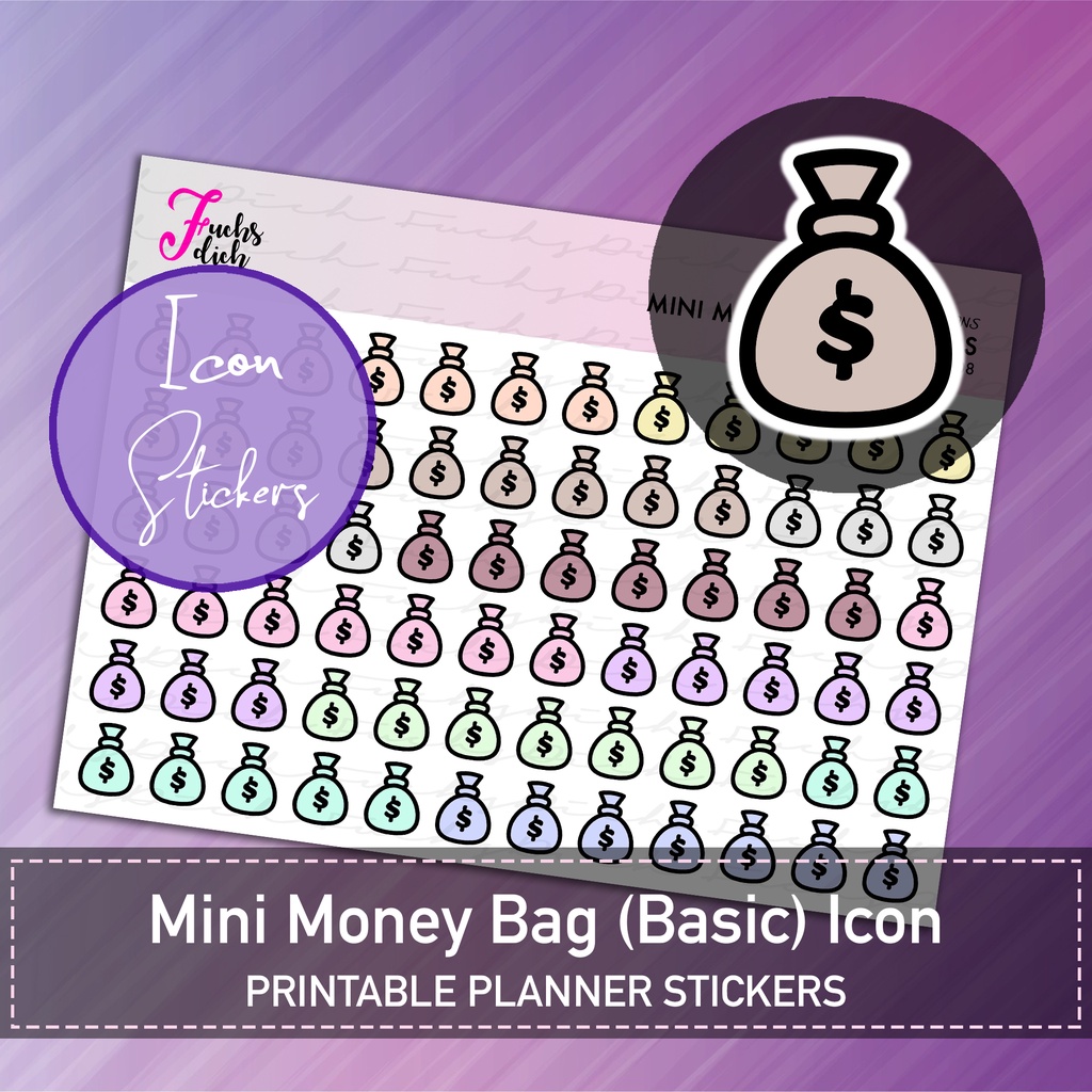 FuchsDich Printable Mini MONEY BAG (Basic) Icon Stickers | PDF File | Small Money Pouch | Minimalist Planner Stickers