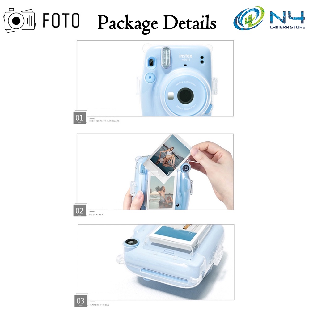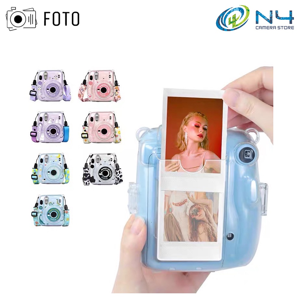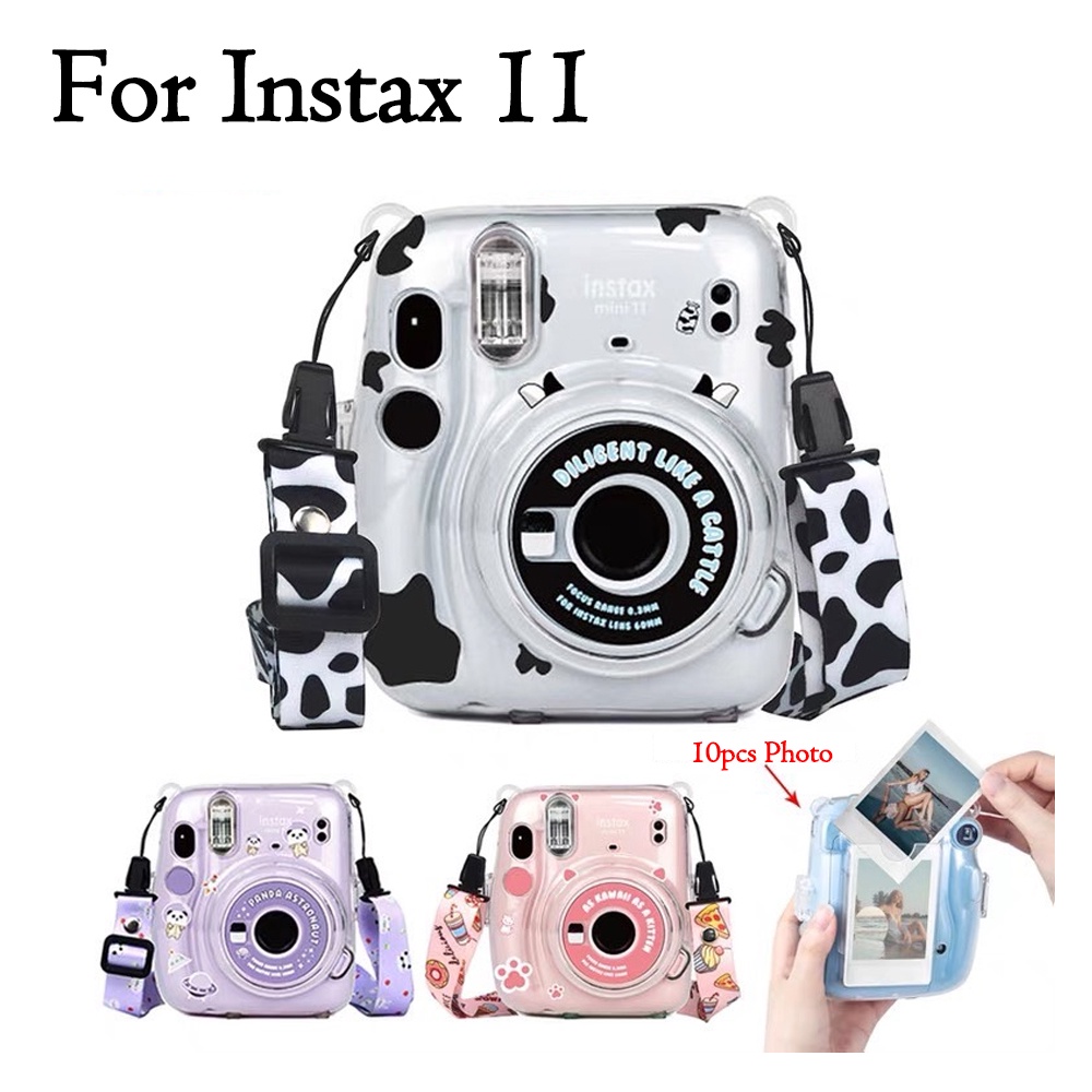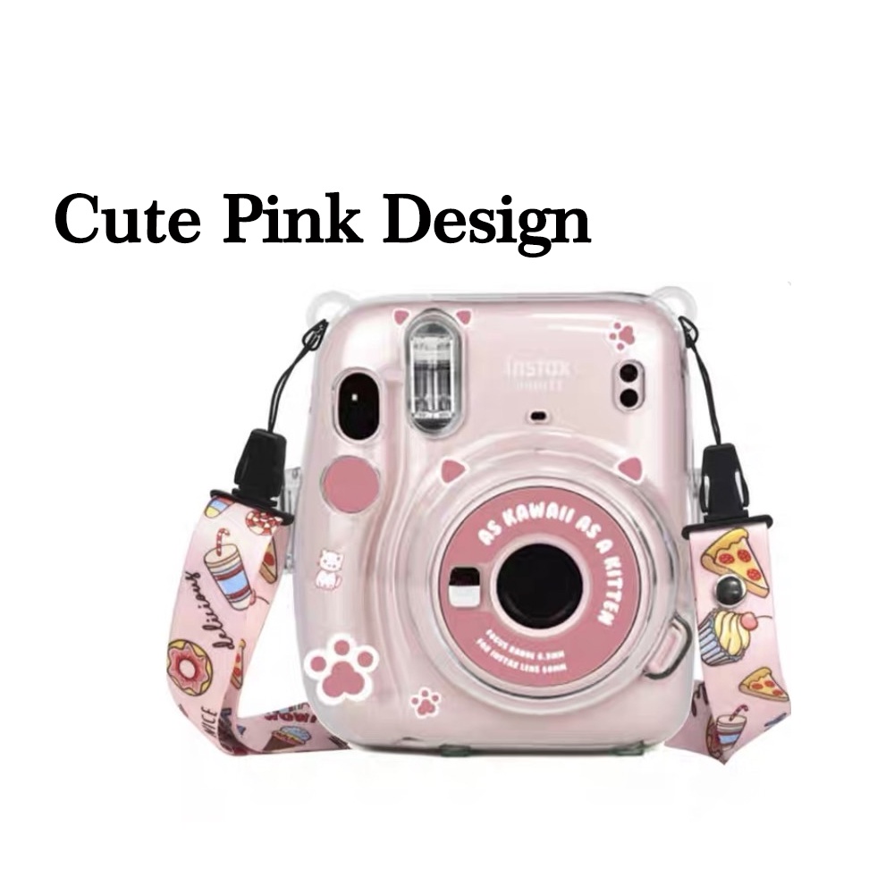Fujifilm Instax Mini 11 Crystal Transparent Case with Lanyard + Design Stickers + Photo Pocket Set Instax11 Crystal Case