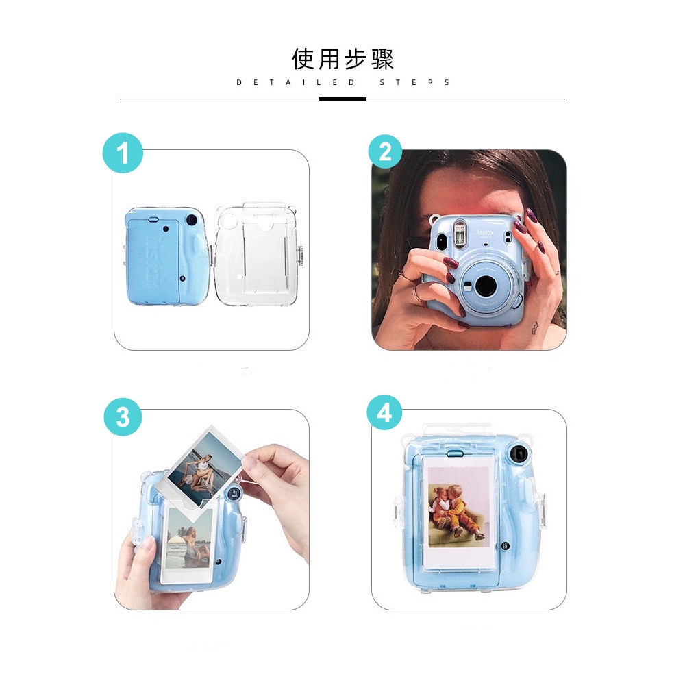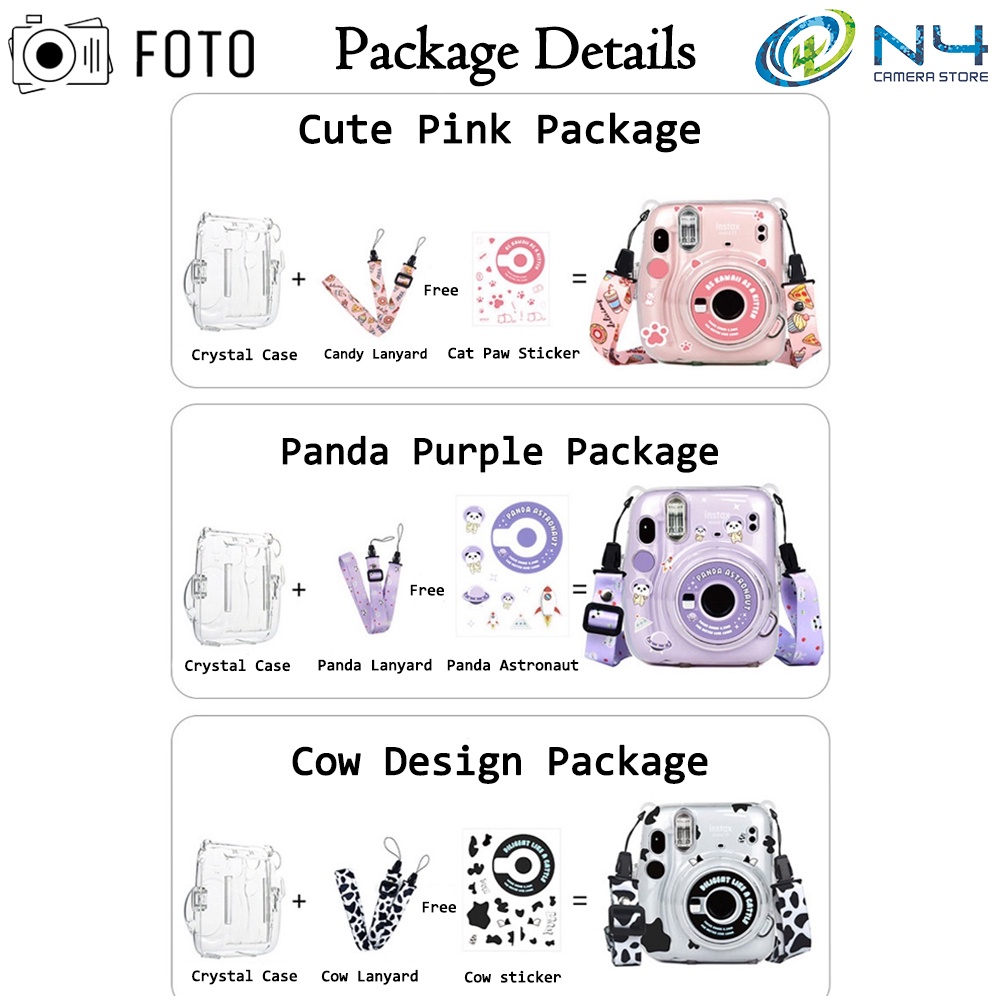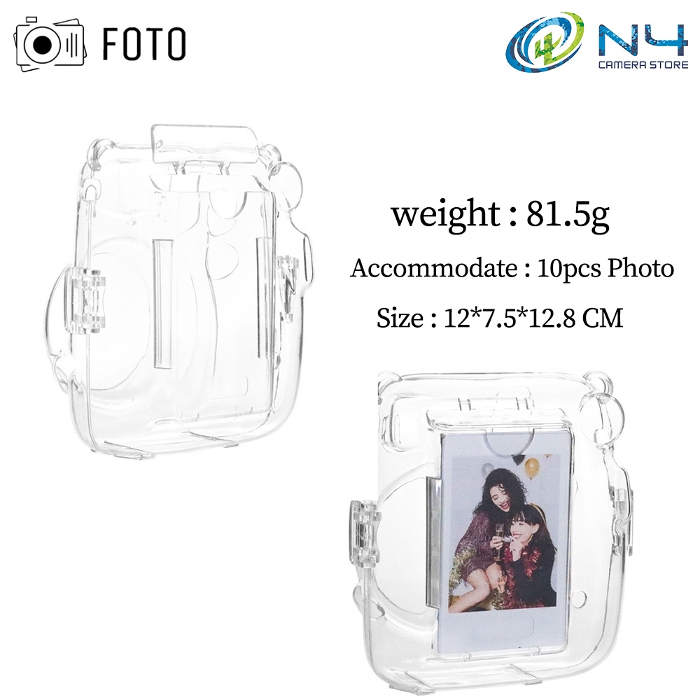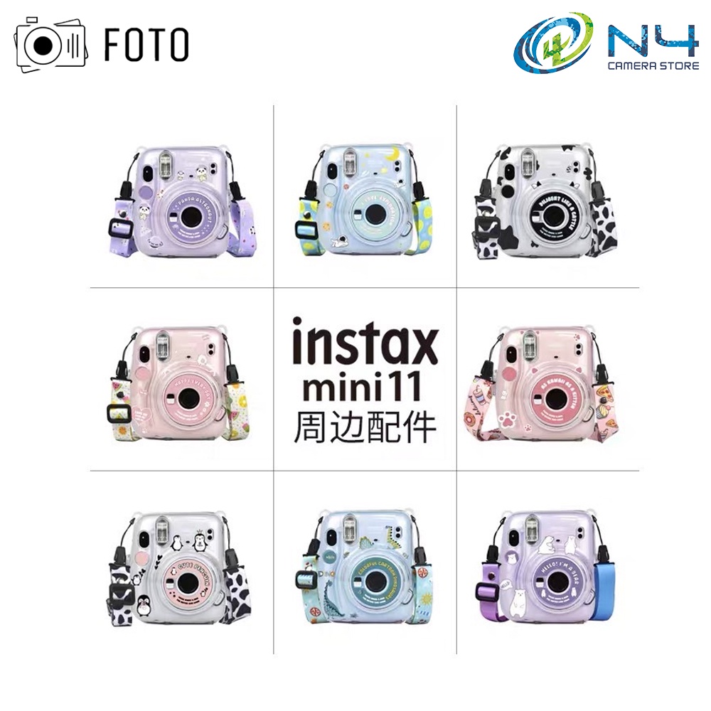 Fujifilm Instax Mini 11 Crystal Transparent Case with Lanyard + Design Stickers + Photo Pocket Set Instax11 Crystal Case