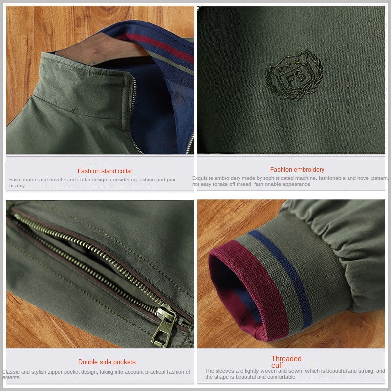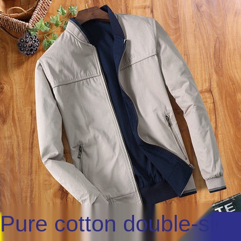 Fujima Dua Belah Setengah Umur Lelaki S Jaket Musim Bunga dan Musim Gugur Kolar Tegak Kapas Kasual Ayah Memakai Jaket Kot Nipis S/*#Fujima Double-Sided Middle-Aged Men S Jacket Spring And Autumn Stand-Up Collar Cotton Casual Dad Wear Thin Coat Jaket S
