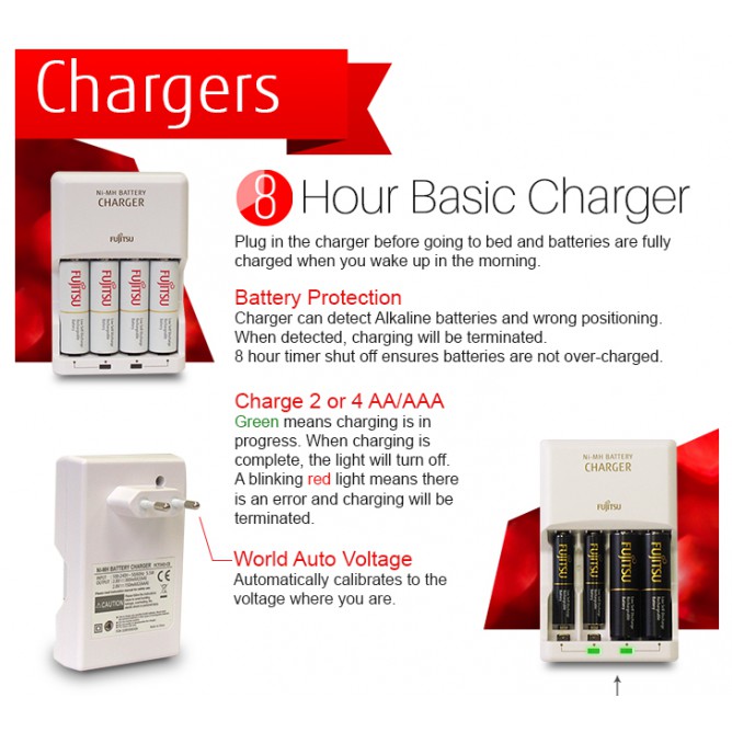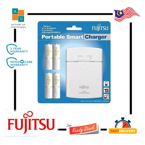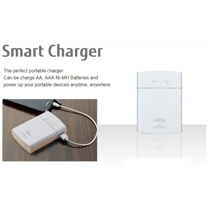 Fujitsu Portable Power Bank Charger + 4x AA NiMh Rechargeable Battery[MADE IN JAPAN]