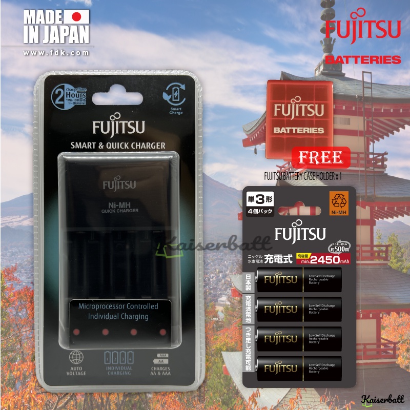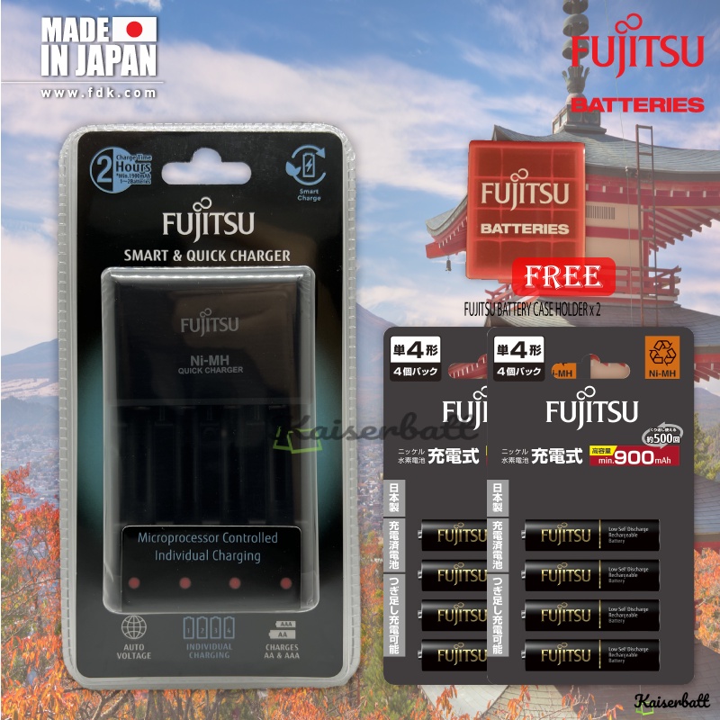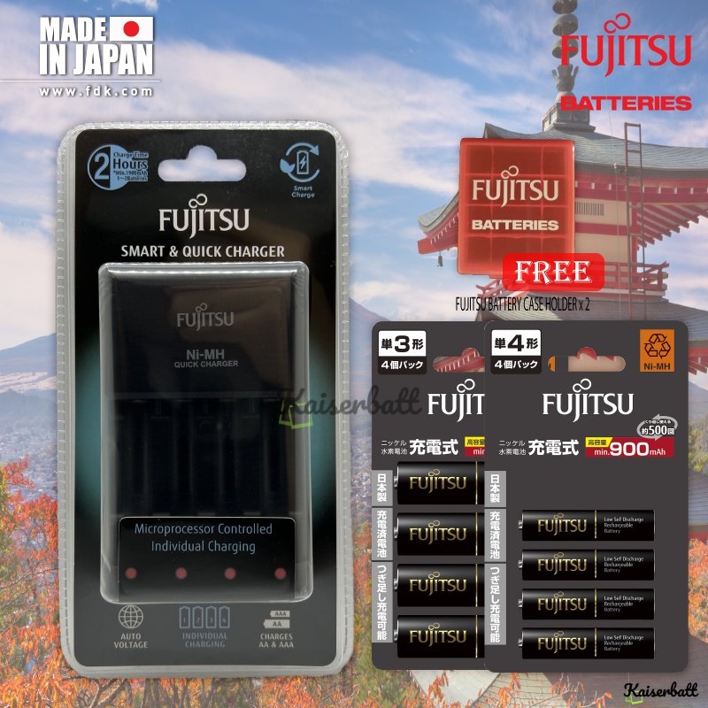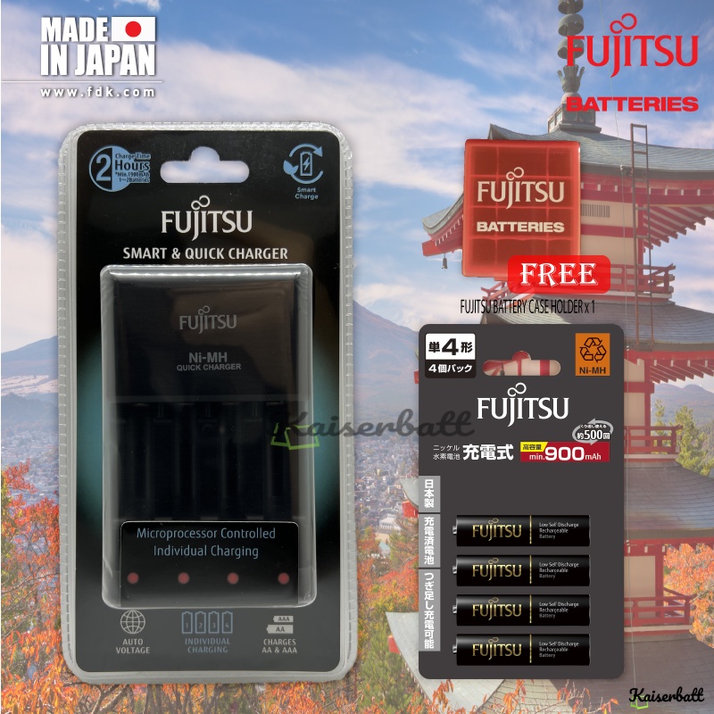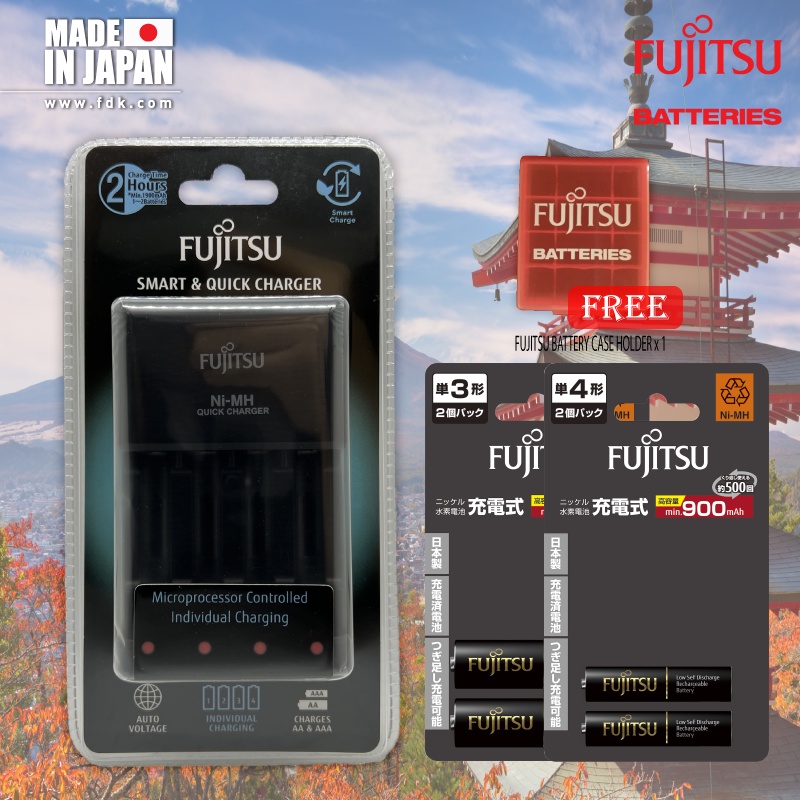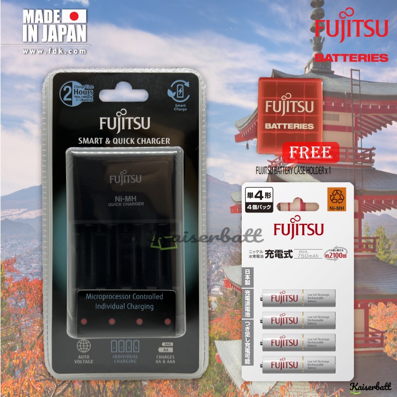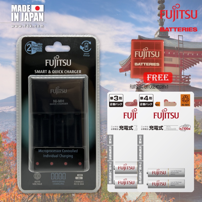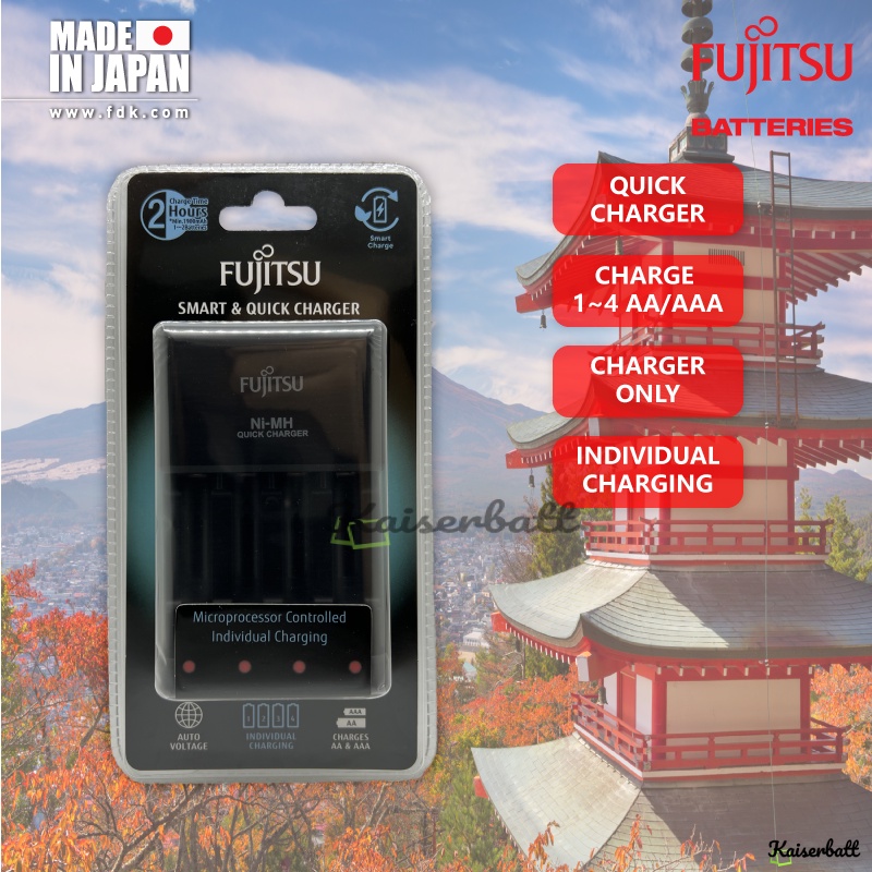 Fujitsu Pro Quick & Smart Charger Individually Charging AA / AAA Rechargeable Battery Charger with AAA Combo Pack