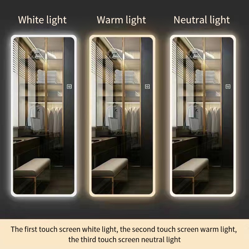 Full-Length Mirror with light 140*50cm Mirror Human body inductionThree Color Light Adjustable, Clear Living Room