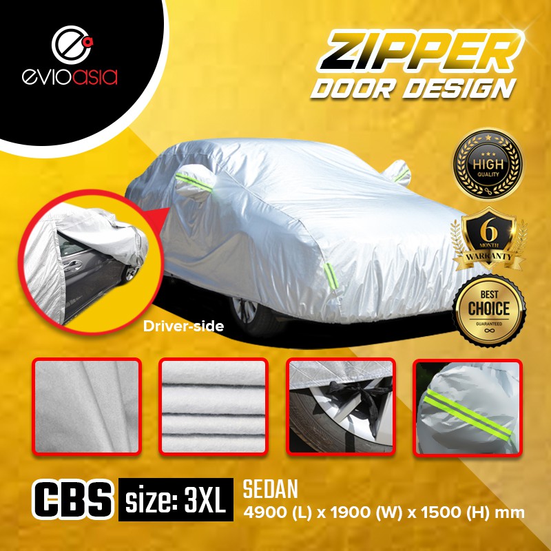 Full Reflective Premium Car Cover With Zipper Door Design UV Rain Dust Protection Sedan SUV MPV Pickup 4x4 (Model CBS)