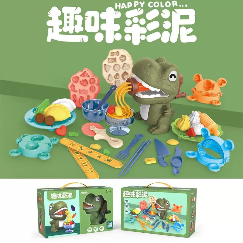 Fun Dinosaur Color Clay Machine Toy Wheat Pastel Clay Noodle Machine DIY Clay Children Play House Set Toy Gift