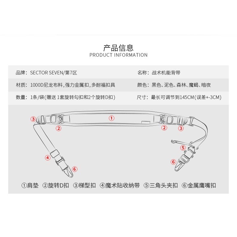 Functional Side Back Strap Modular Extendable Shoulder Strap Tactical Quick Adjustment Quick Release Strap Military Style Strap