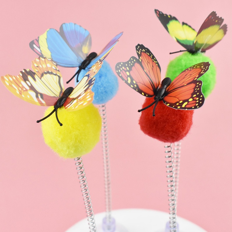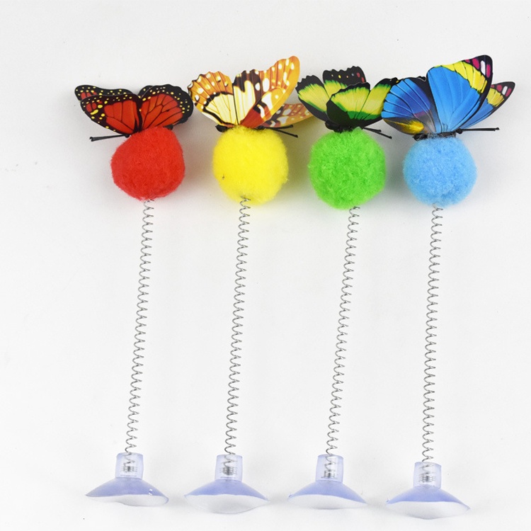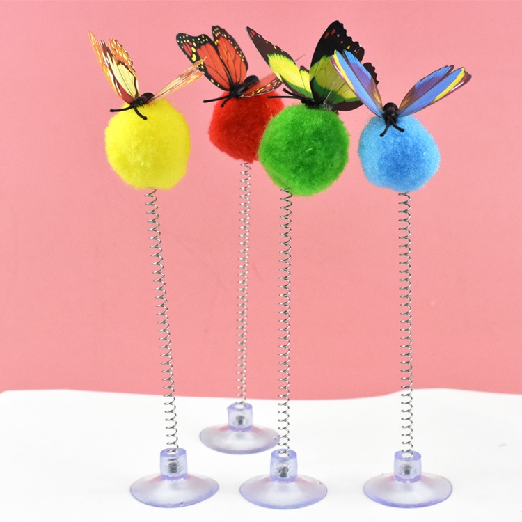 Funny Cat Toys Elastic Feather Ball Butterfly with Spring Interactive Toy Chaser Furry Ball