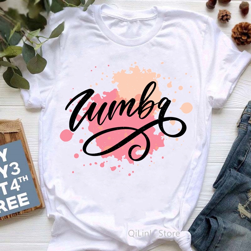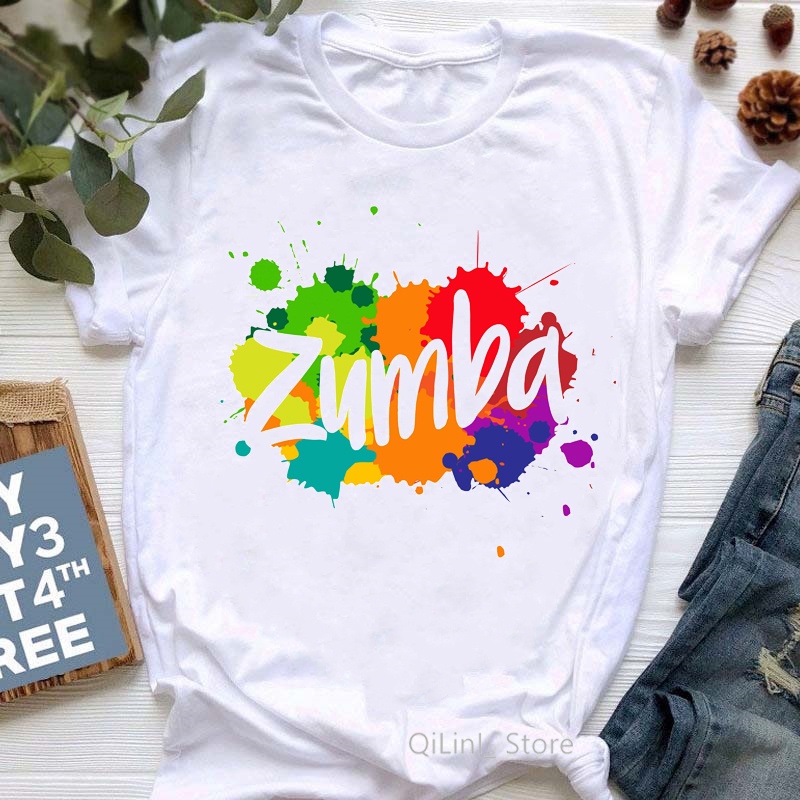 Funny Watercolor Dance Fitness Tshirt Femme Summer Graphic Tees Women Short Sleeve Casual T Shirt Zumba T-Shirt Tops