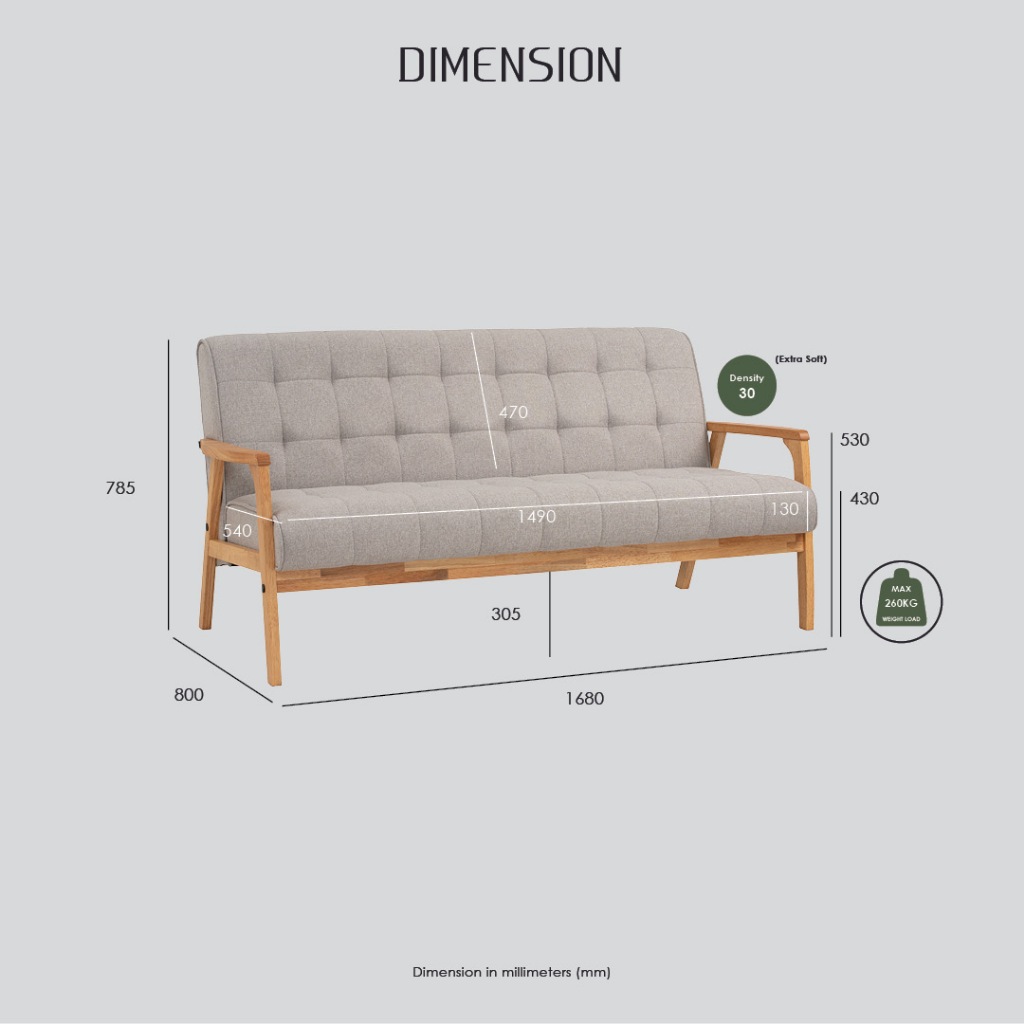 Furniture Direct TUCSON HIACE 3 seater wooden sofa fabric kain PU murah kayu
