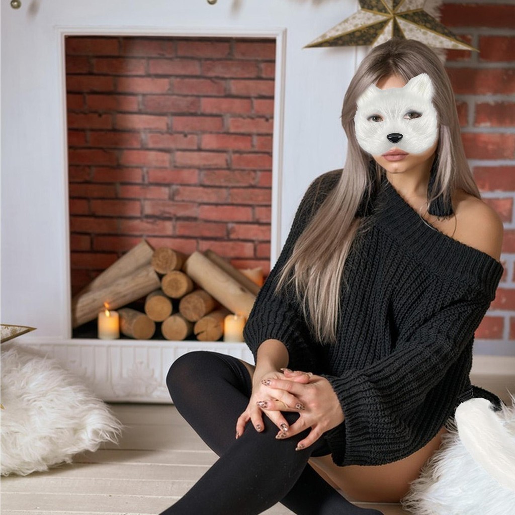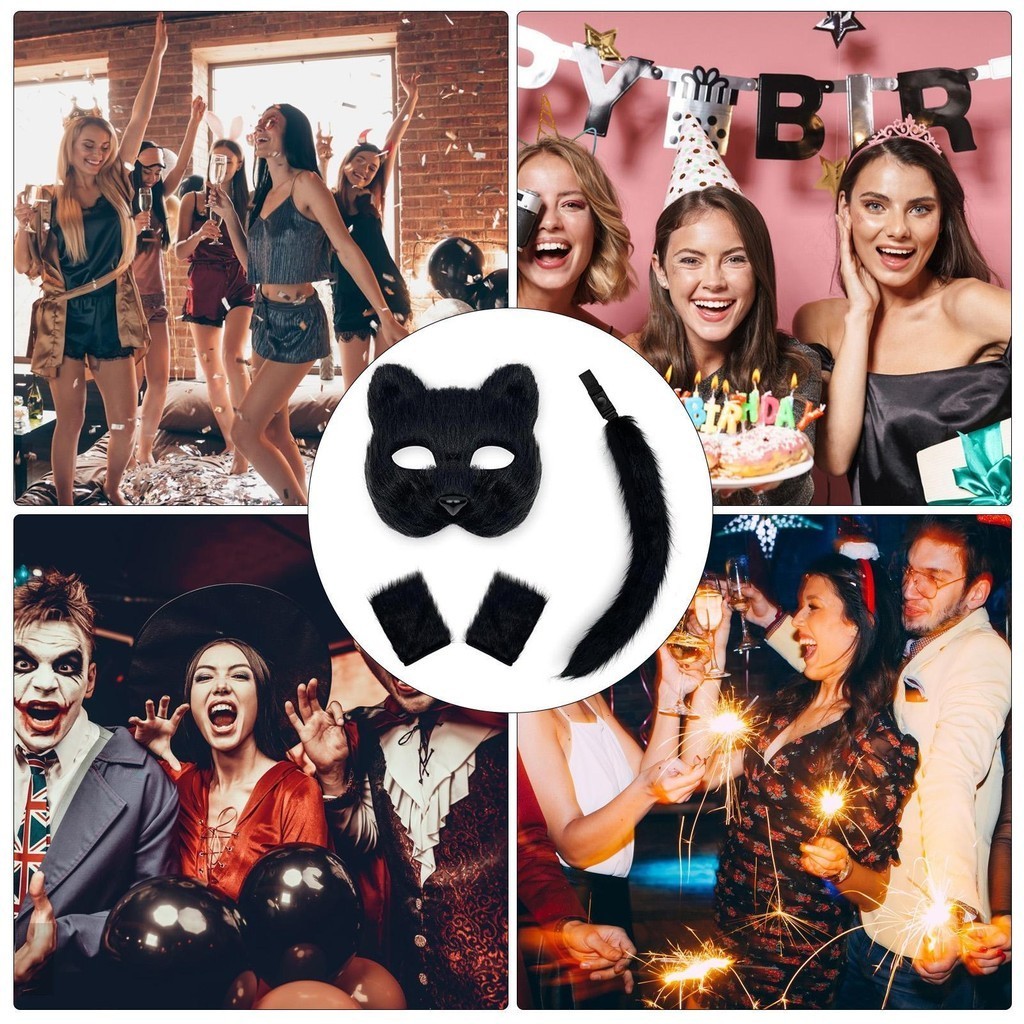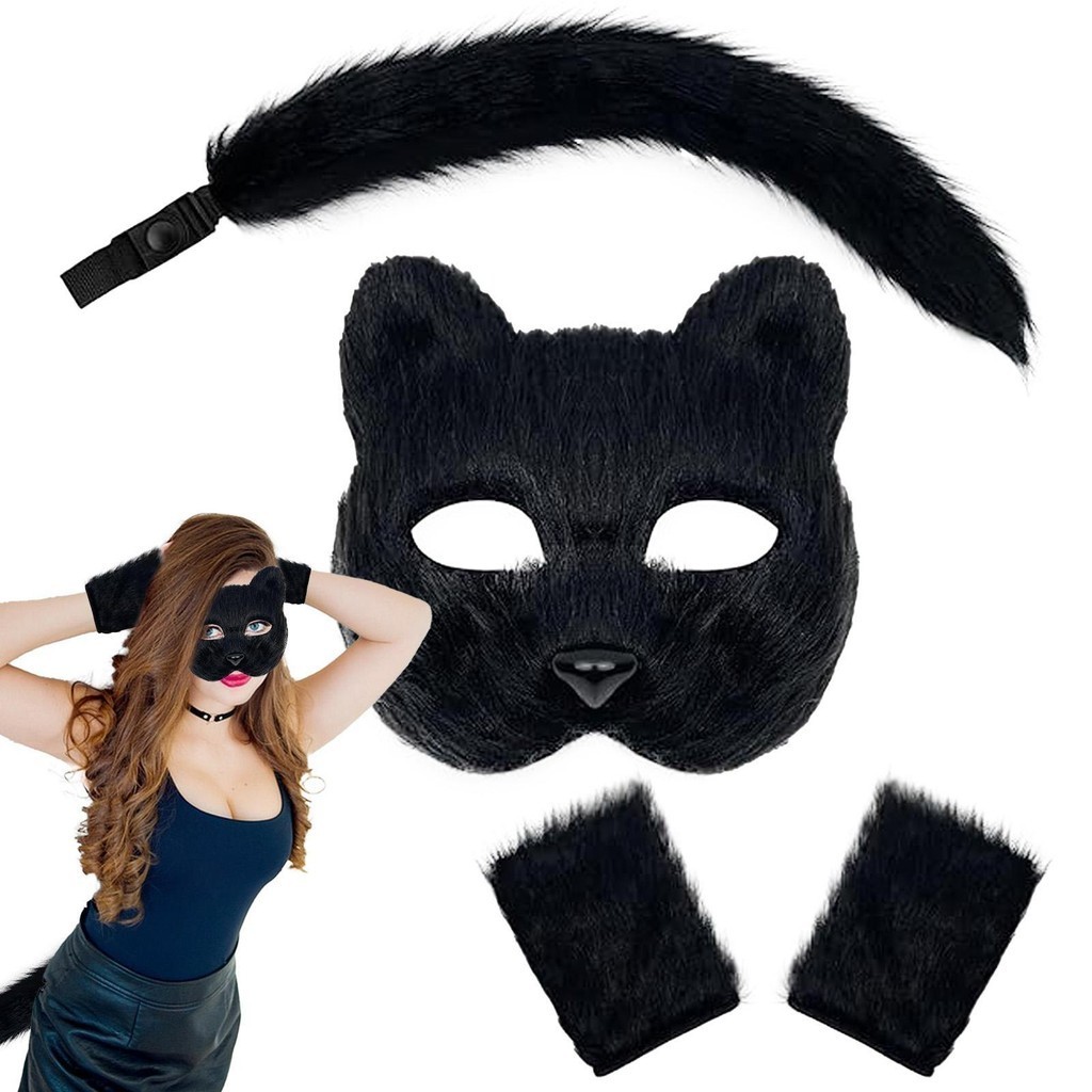 Furry Fox Mask Tail Set for Halloween Cosplay Role Play Therian Masquerade Set with Paw Gloves greiwemy