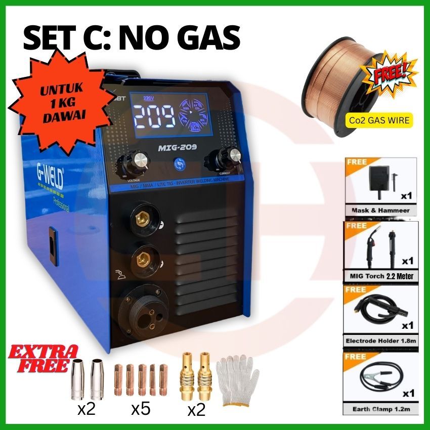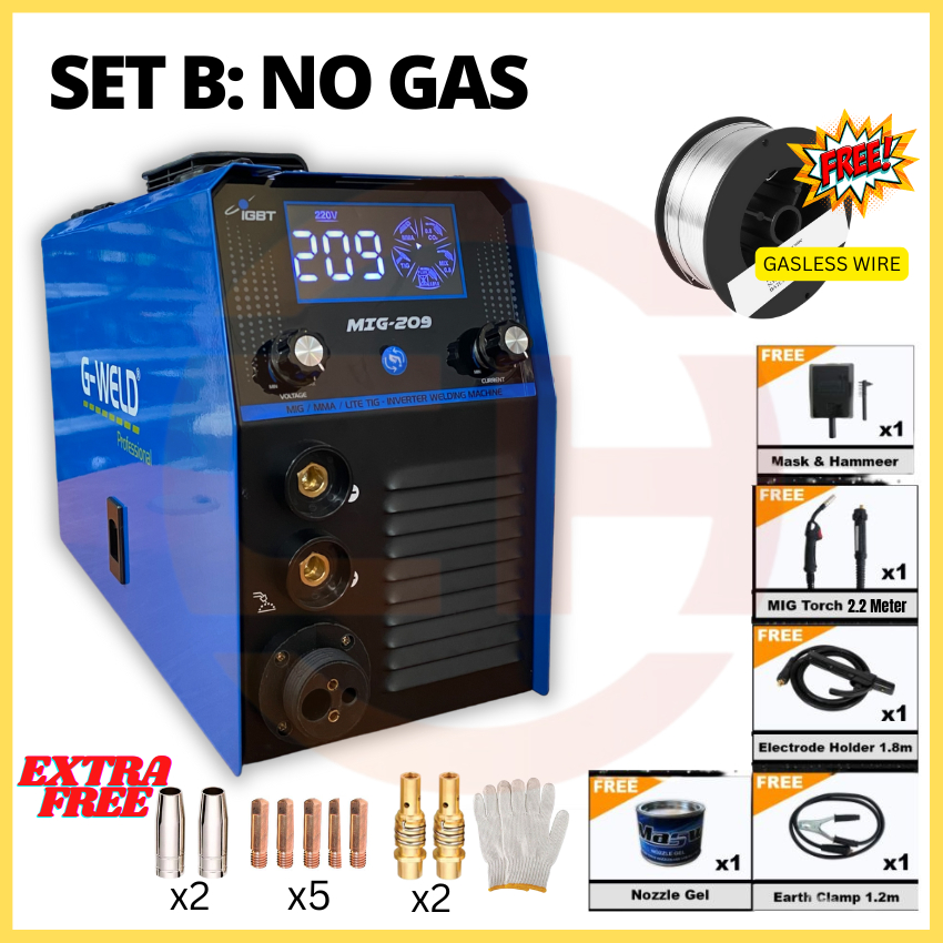 G-WELD MIG209 1KG MIG MMA LIFT-TIG Welding Machine Welding Set Mig Gas / Gasless