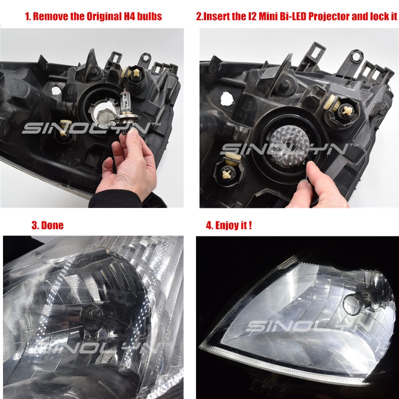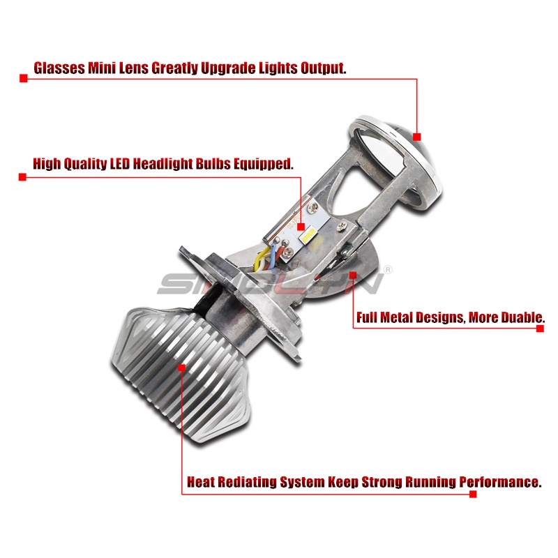 G6 H4 LED Headlight Bulbs Projector Lens Mini H4 Bi-LED Projector Lens 1.5 inch 60W 6000K Car Motorcycle Light Styling