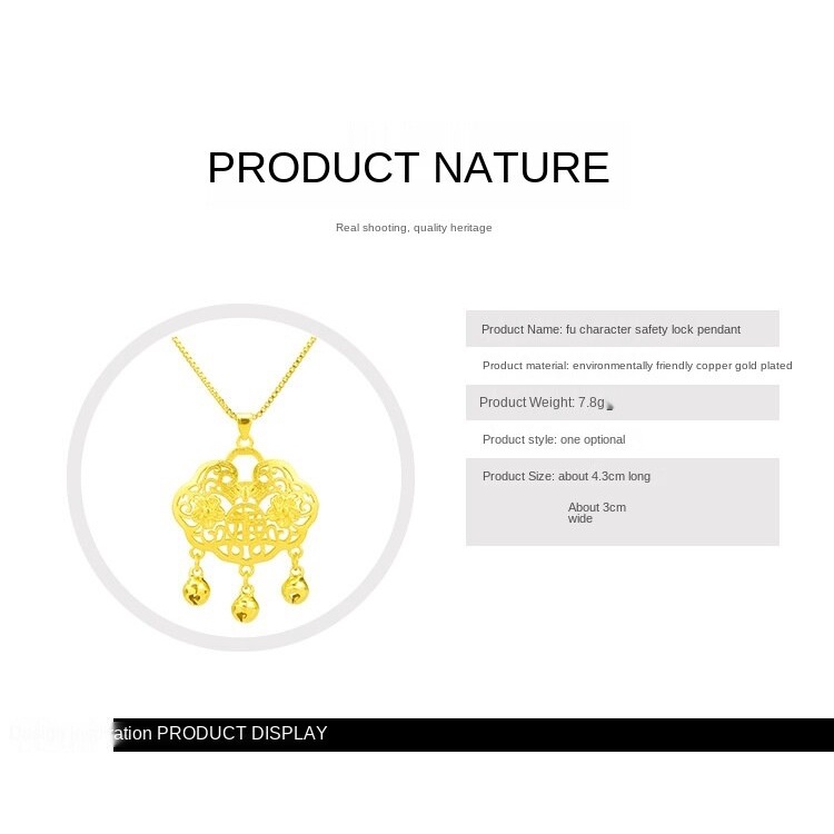 GA Jewellery 24K Yellow Gold Longevity Lock Pendant Rich and Safe Gold Pendant 916 Necklace