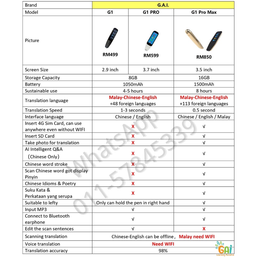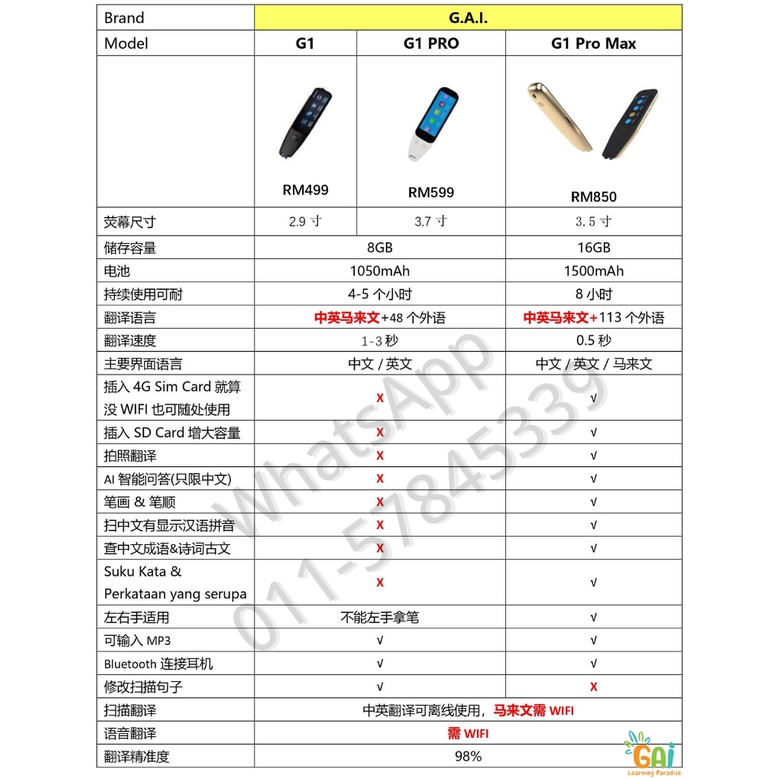 GAI G1 Pro Max 【Malay-Chinese-English】Dictionary and Translator Pen Electronic Dictionary Translator Device 词典笔 翻译笔