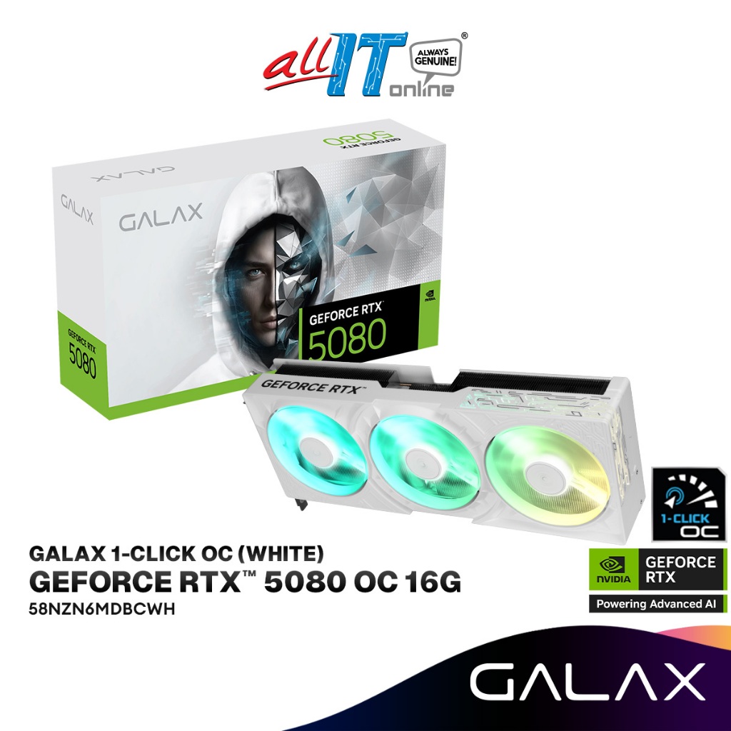 GALAX GeForce RTX 5080 1-Click OC 12GB GDDR7 White Graphics Card | 58NZN6MDBCWH