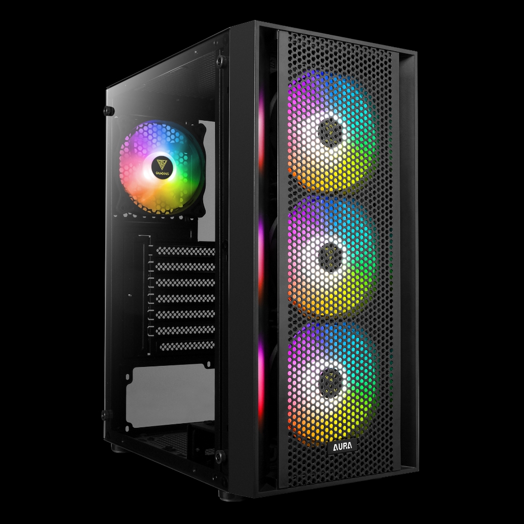 GAMDIAS AURA GC2 Perforated ARGB Tempered Glass Mid Tower (ATX) Gaming PC Casing | Included 4x 120mm ARGB Case Fans