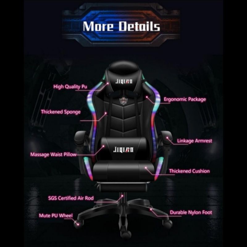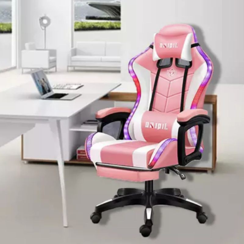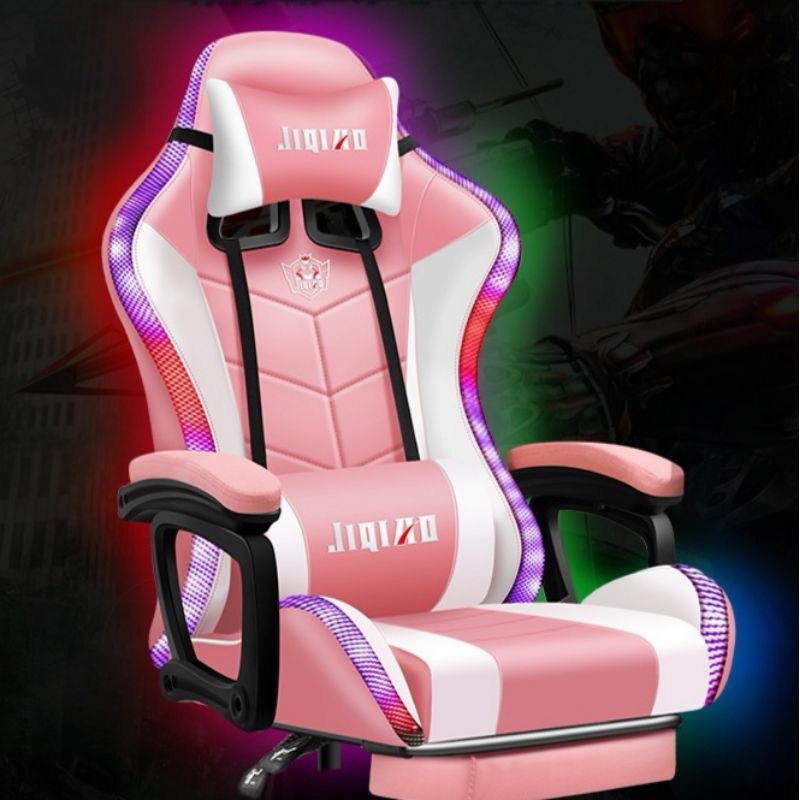 GAMING PINK RGB LED LIGHTS Gaming Chair with footrest Massage Function PUBG Esports Study Chair