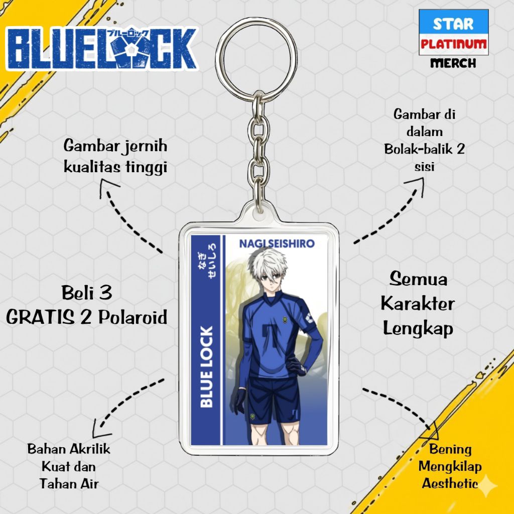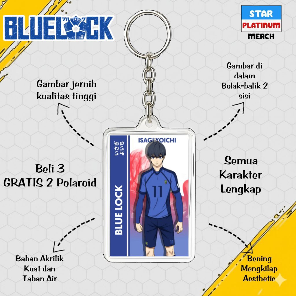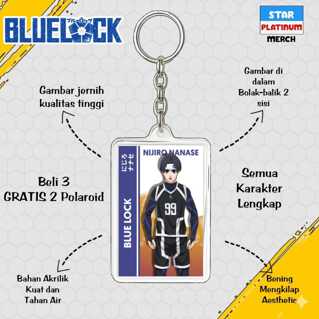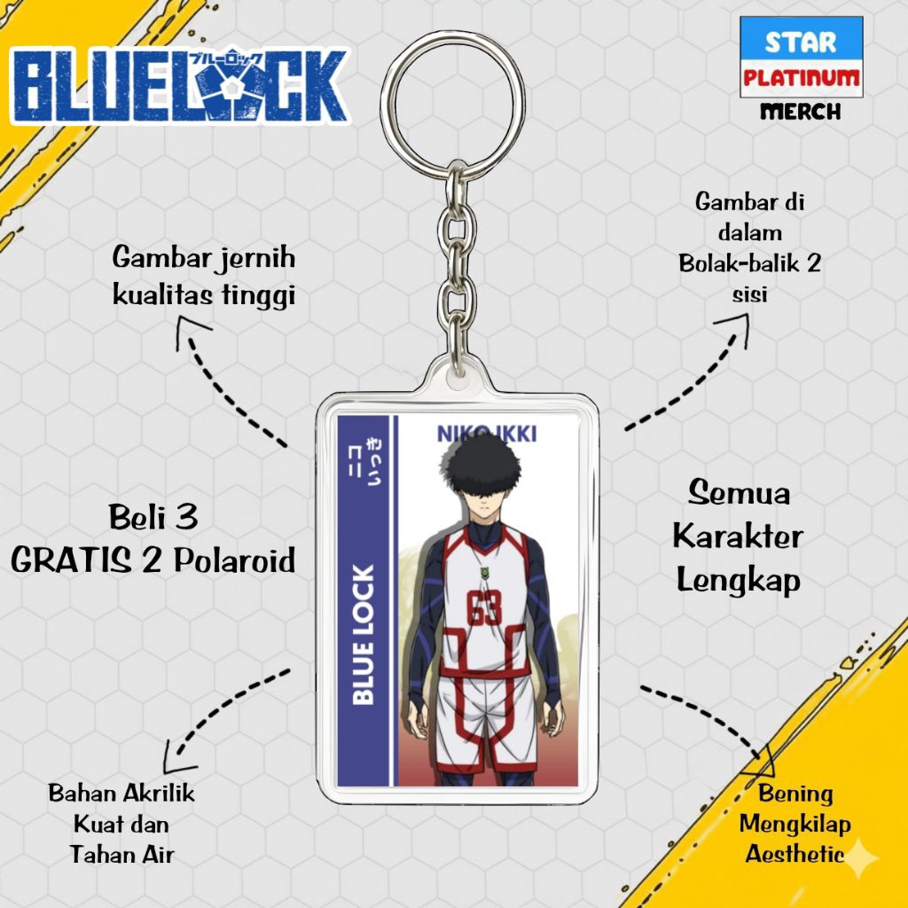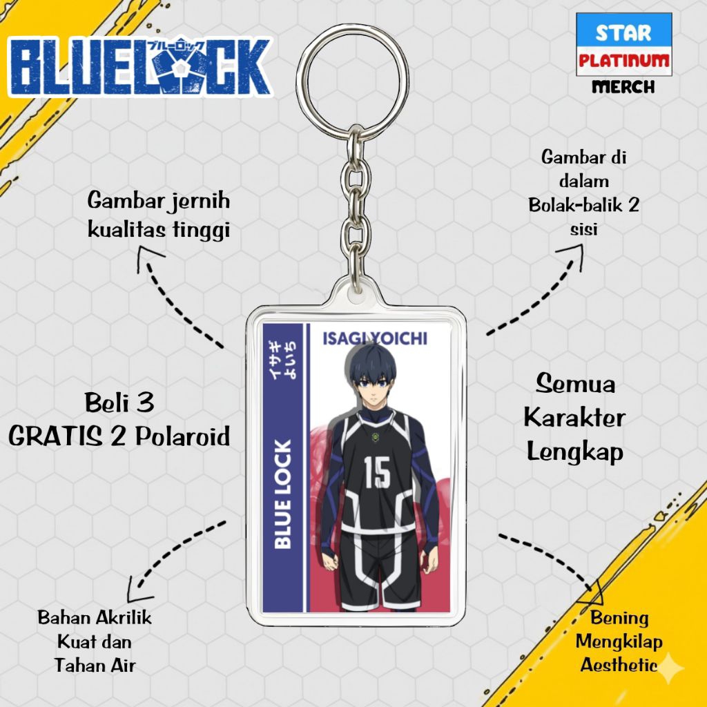 GANTUNGAN Blue Lock Keychain - Blue Lock Keychain - Anime Keychain - Nagi Keychain - Kaiser - Isagi - Rin - Shidou - Kenyu - Sae - Aiku - Barou - Bachira - Chigiri - Rei - Gagamaru - Kunigami - Raichi - Niko - Zethets